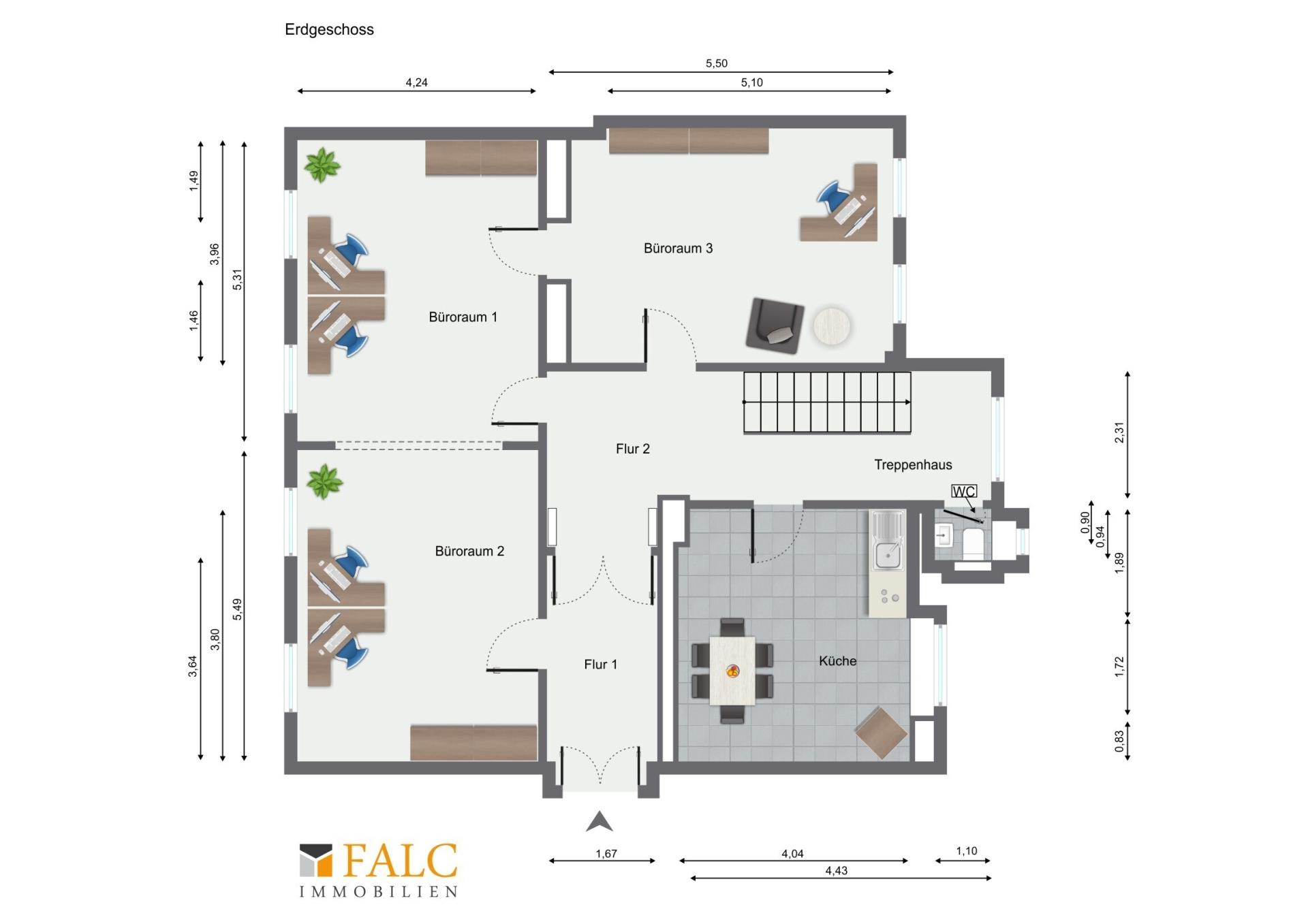 Mit ihrer repräsentativen Architektur und der zentralen Lage bietet die Fläche den idealen Rahmen für anspruchsvolle Büros, Kanzleien oder Praxen, die Wert auf ein repräsentatives Umfeld legen.