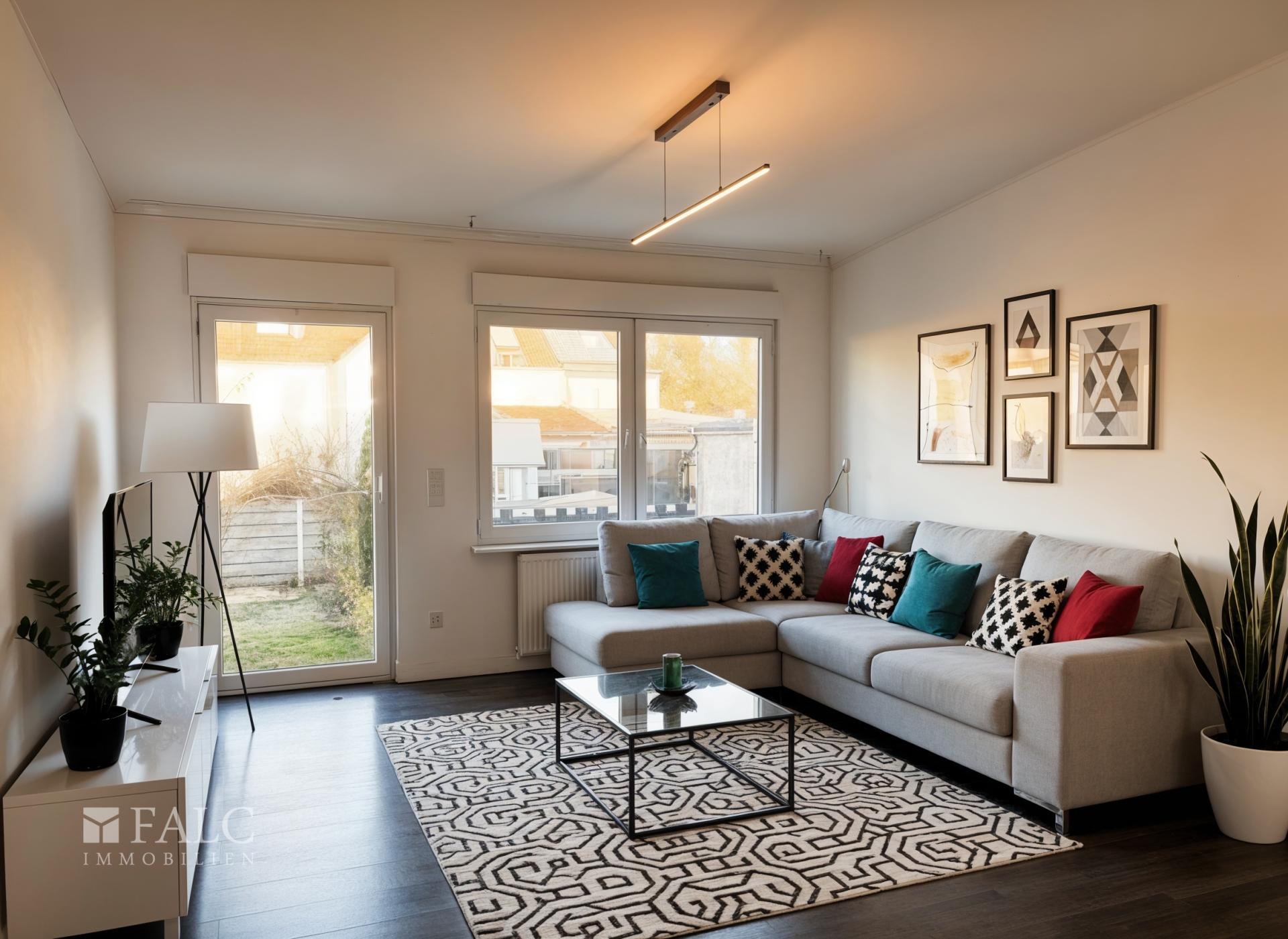 Beim Betreten dieses im Jahr 2016 umfassend modernisierten Reihenendhauses, werden Sie von einer weitläufigen Diele empfangen. Von hier aus gelangen Sie direkt in das Herzstück des Hauses, das großzügige Wohnzimmer mit Blick in den Garten. Die großen Fenster sorgen für viel Tageslicht und schaffen eine helle, freundliche Atmosphäre.