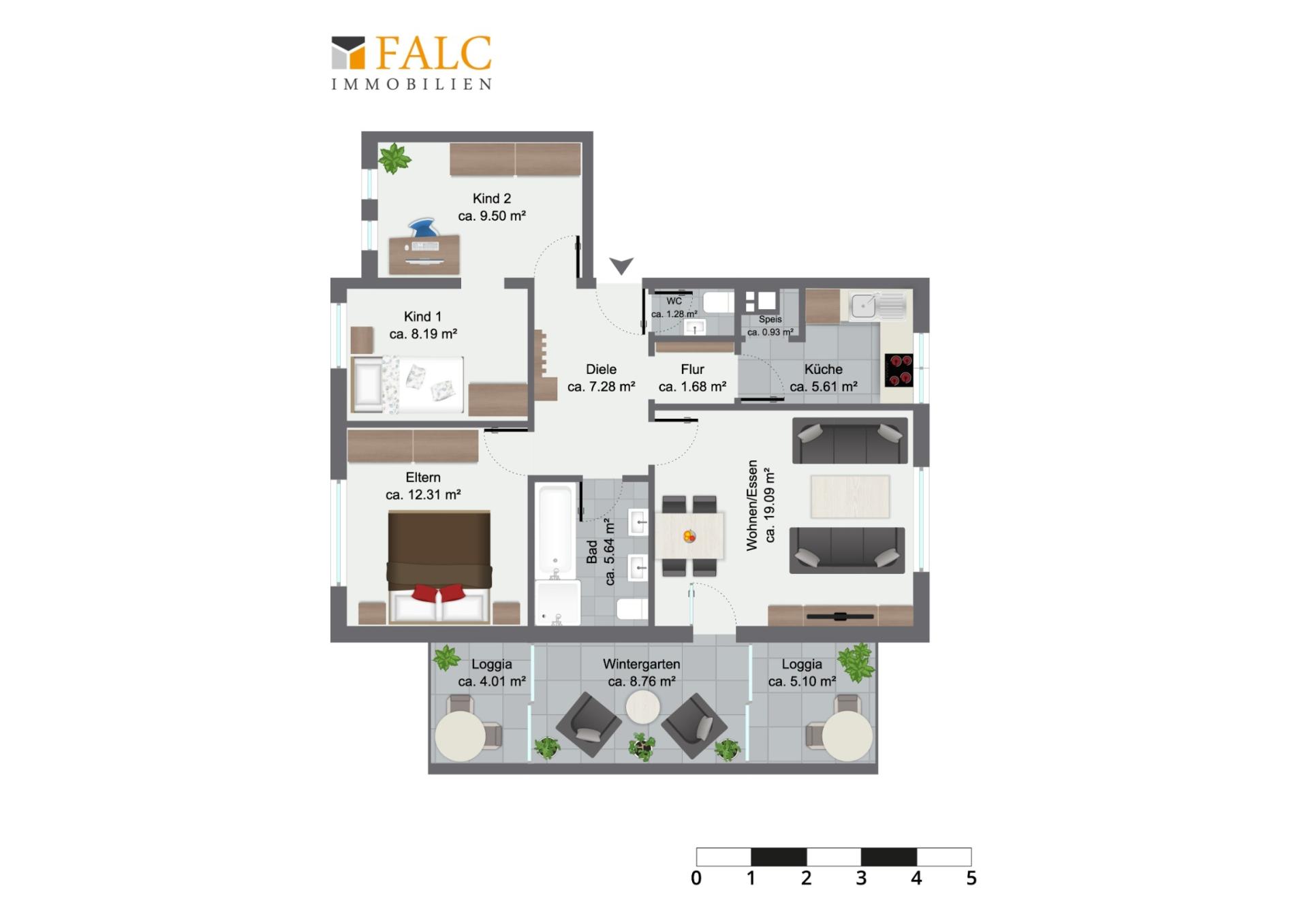 gemütliche Familienwohnung: 4 Zimmer mit Wintergarten, zwei Loggien & Tiefgaragenstellplatz