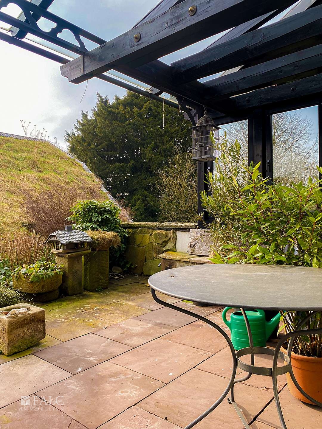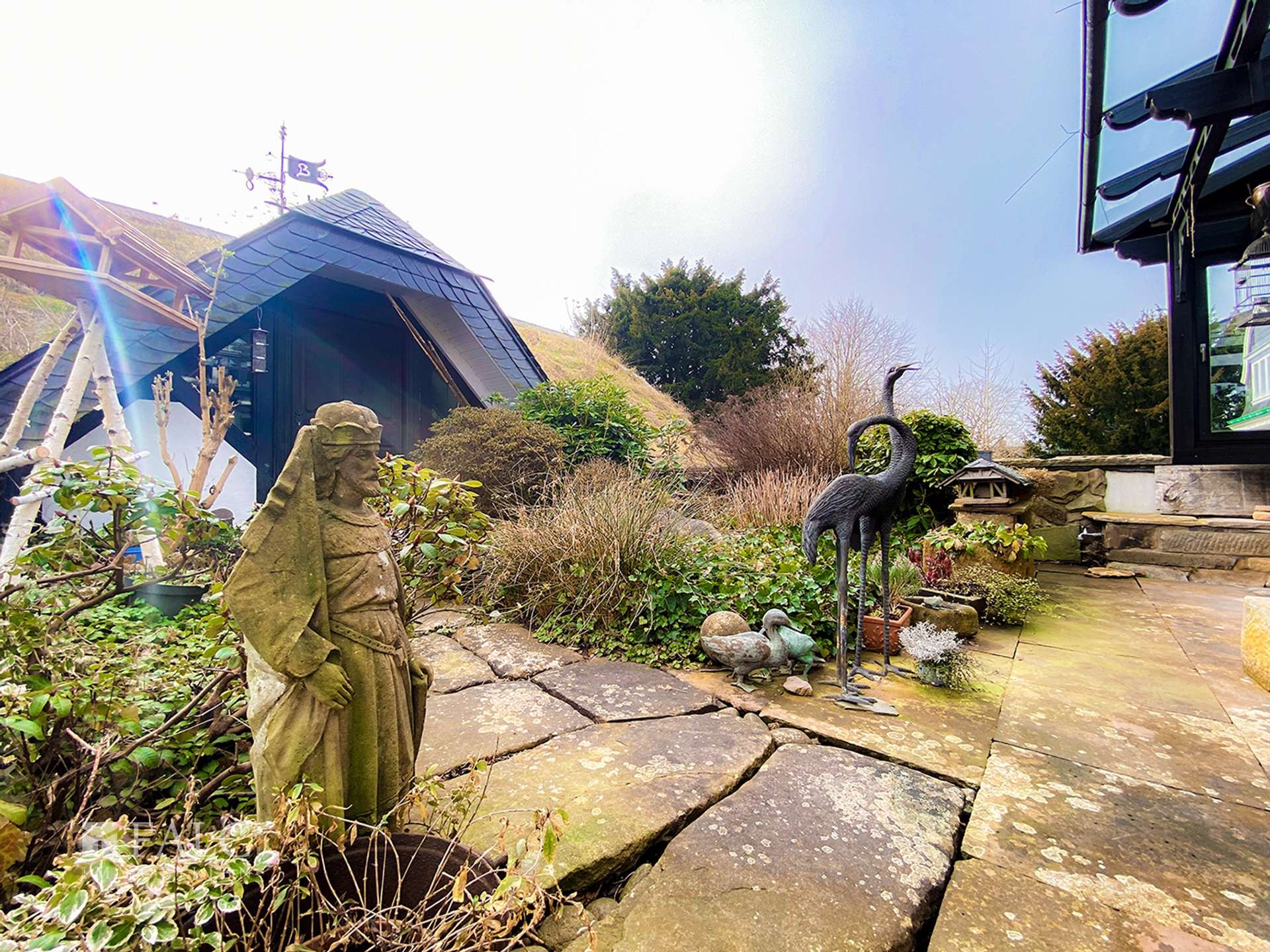 Ein Gartenplaner gestaltete den kompletten Außenbereich mit viel Geschmack und Feingefühl. Besonders hervorzuheben ist der wunderschöne Dachgarten als Verbindung zwischen Haupt- und Hintergebäude.