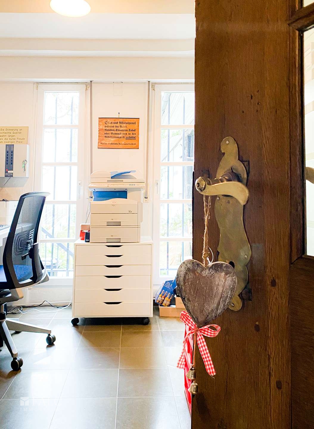 Hinter dem historischen Wohnhaus wurde das Hintergebäude mit begrüntem Dach 2001 errichtet. Hier finden eine Naturhellpraxis, eine Dachgeschosswohnung, Garage und Lagerräume Platz.