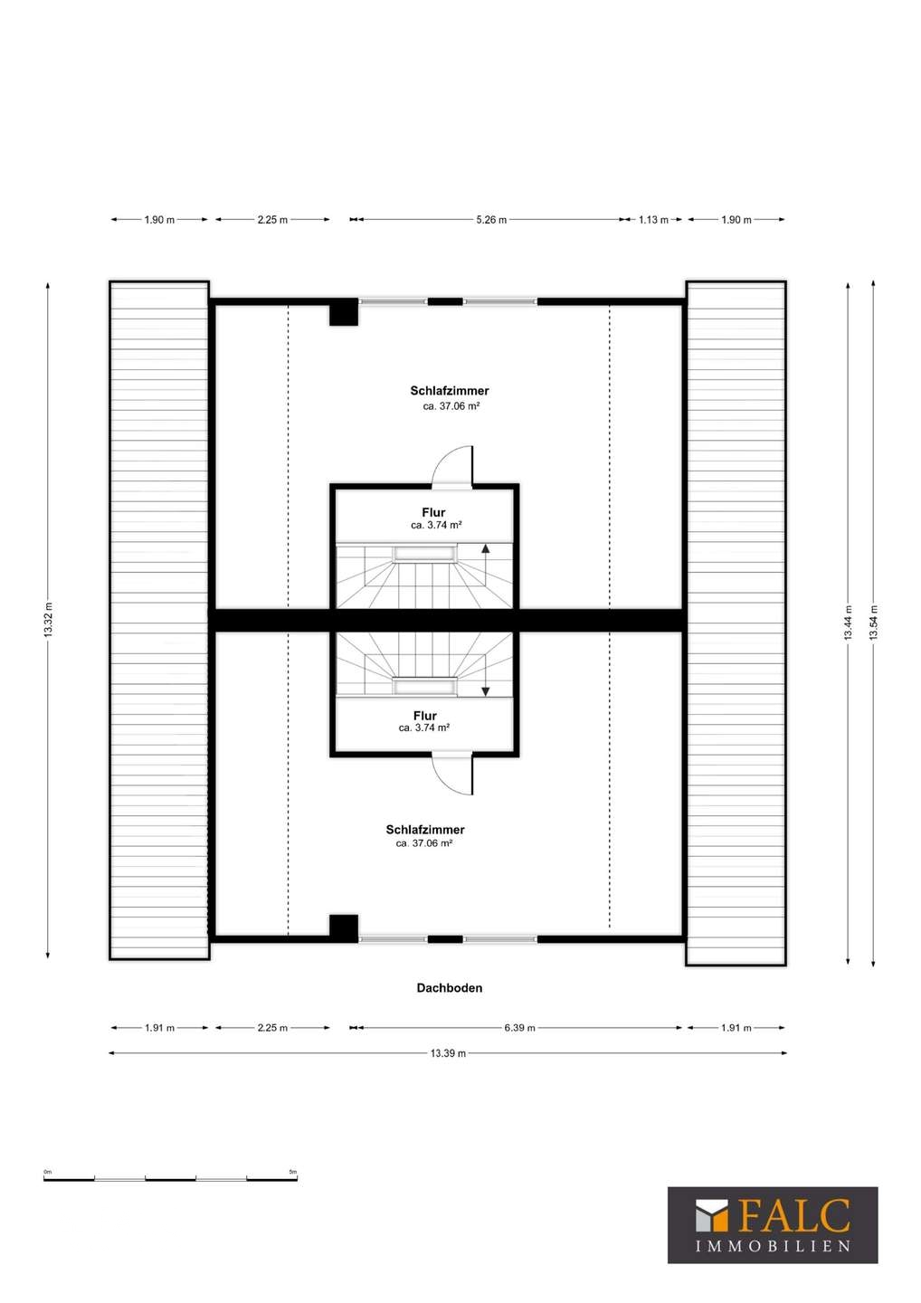 Ein echtes Highlight ist das Dachgeschoss: Der offen gestaltete Raum mit ca. 37 m² Wohnfläche bietet sich perfekt als Elternbereich, Studio oder Gästezimmer an. Hier lässt sich Wohnen und Arbeiten auf stilvolle Weise verbinden.