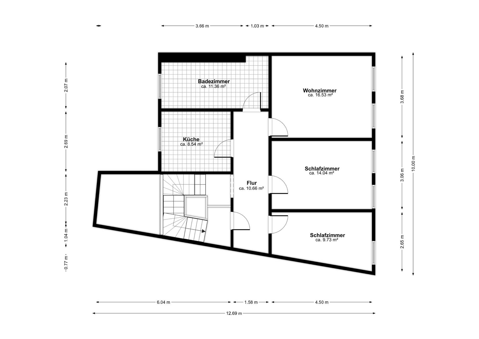 - 1. Obergeschoss: 7,02 €/m² Kaltmiete 470,34 € mtl., 5.644,08 € p.a. (zzgl. 50 €/Monat Miele Küche bei Neuvermietung).