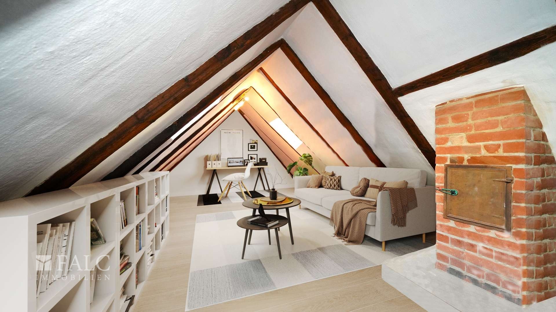 Ein ausgebauter Spitzboden hält einen großzügigen Galerie-ähnlichen Rückzugsort bereit. Richten Sie sich hier ein Home-Office ein oder gönnen Sie Ihrem Teenie einen Partyraum für sich und dessen Freunde.