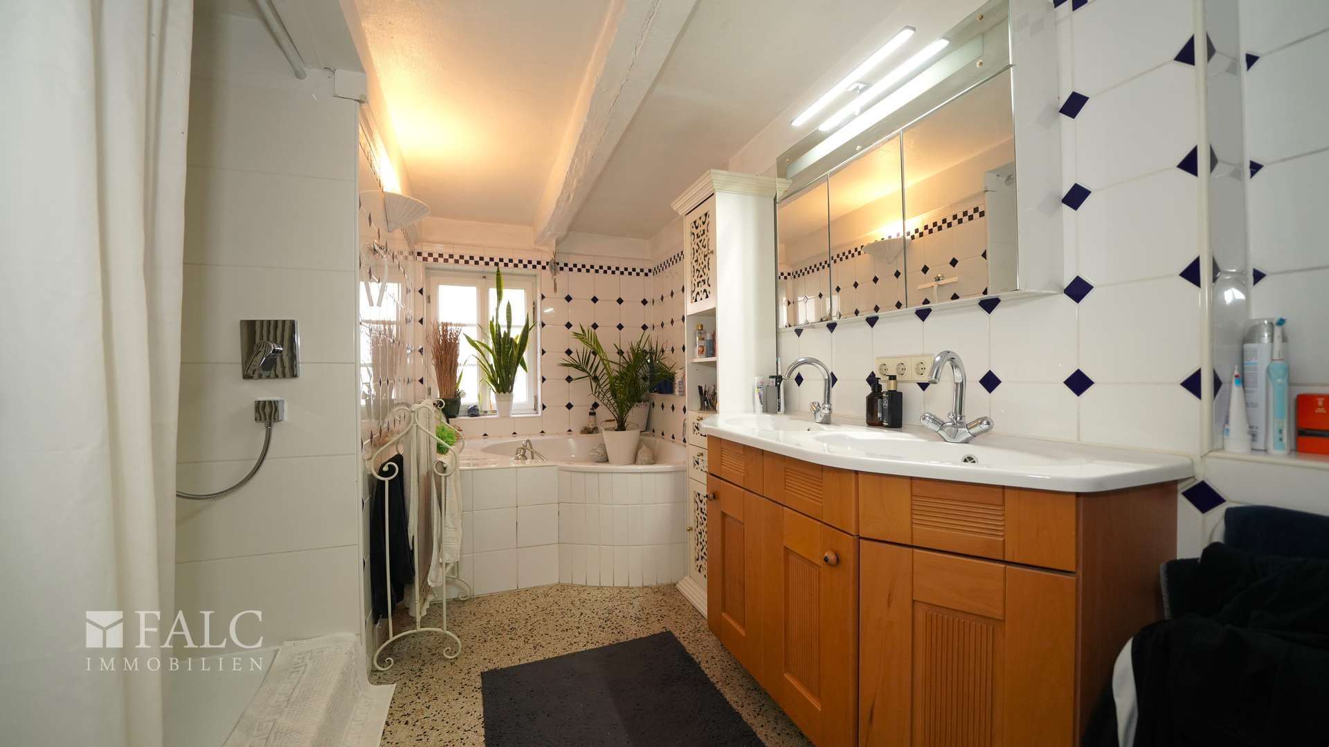 Ein Familienbad muss den verschiedensten Bedürfnissen gerecht werden und die Kunst des Verwöhnens beherrschen - die Badeoase erfüllt seine Pflichten vollkommen! Es verfügt über Tageslicht, ein WC, eine Eckbadewanne zur Entspannung, eine Dusche für Erfrischungen am Morgen und ein großes Doppelwaschbecken mit Ablage für Flakons und sonstige Utensilien. Durch ein separates WC auf dieser Etage gibt es beim Entspannen und Stylen keine lästigen Störungen.