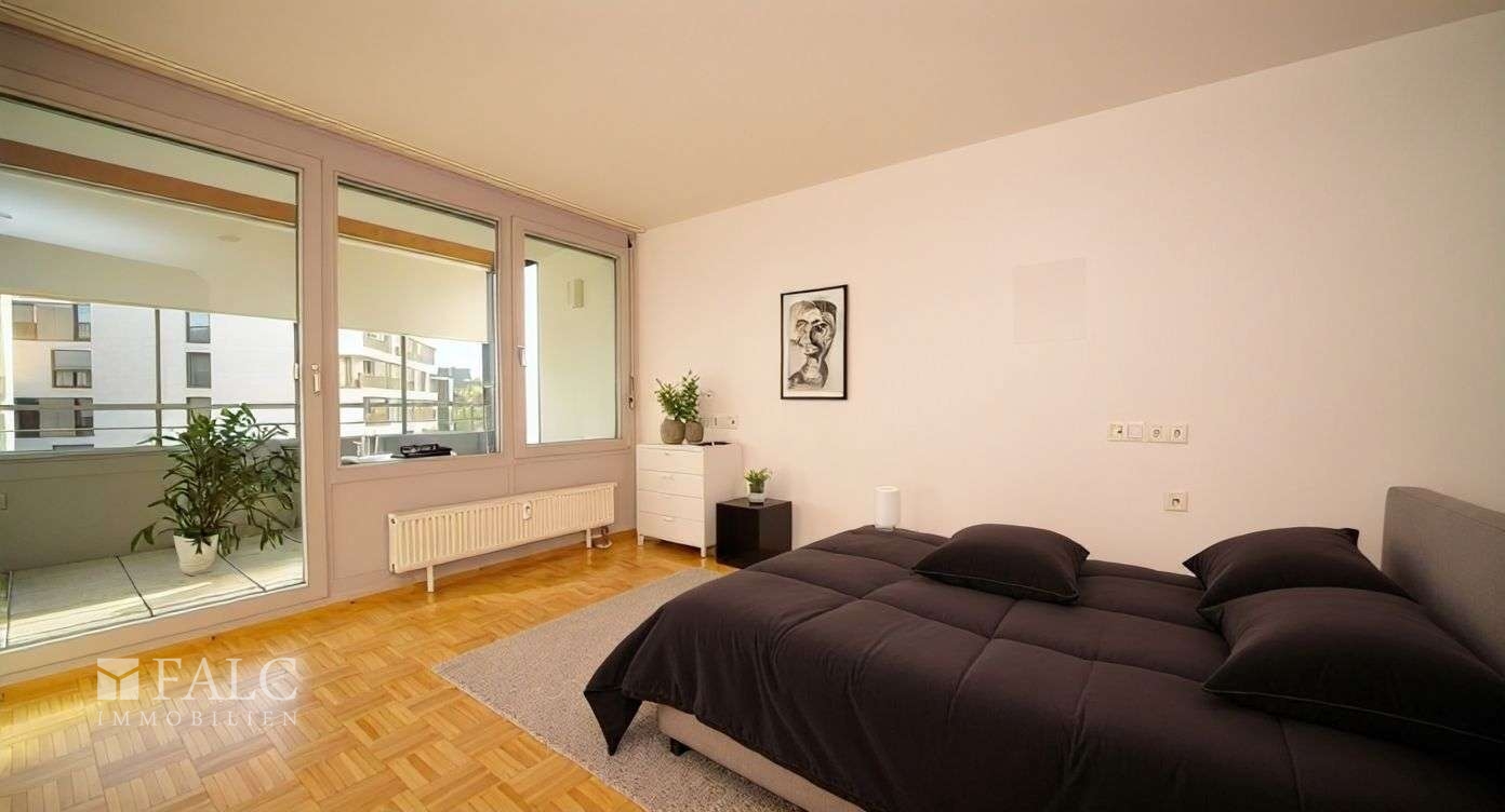 Das Schlafzimmer ist ruhig gelegen und ebenfalls hell und freundlich. Ein großes Fenster sorgt für eine angenehme Lichtstimmung, außerdem haben Sie von hier aus Zugang zum Wintergarten. Sie finden ausreichend Platz für ein bequemes Bett und einen Kleiderschrank – ideal, um sich zurückzuziehen und zu entspannen.