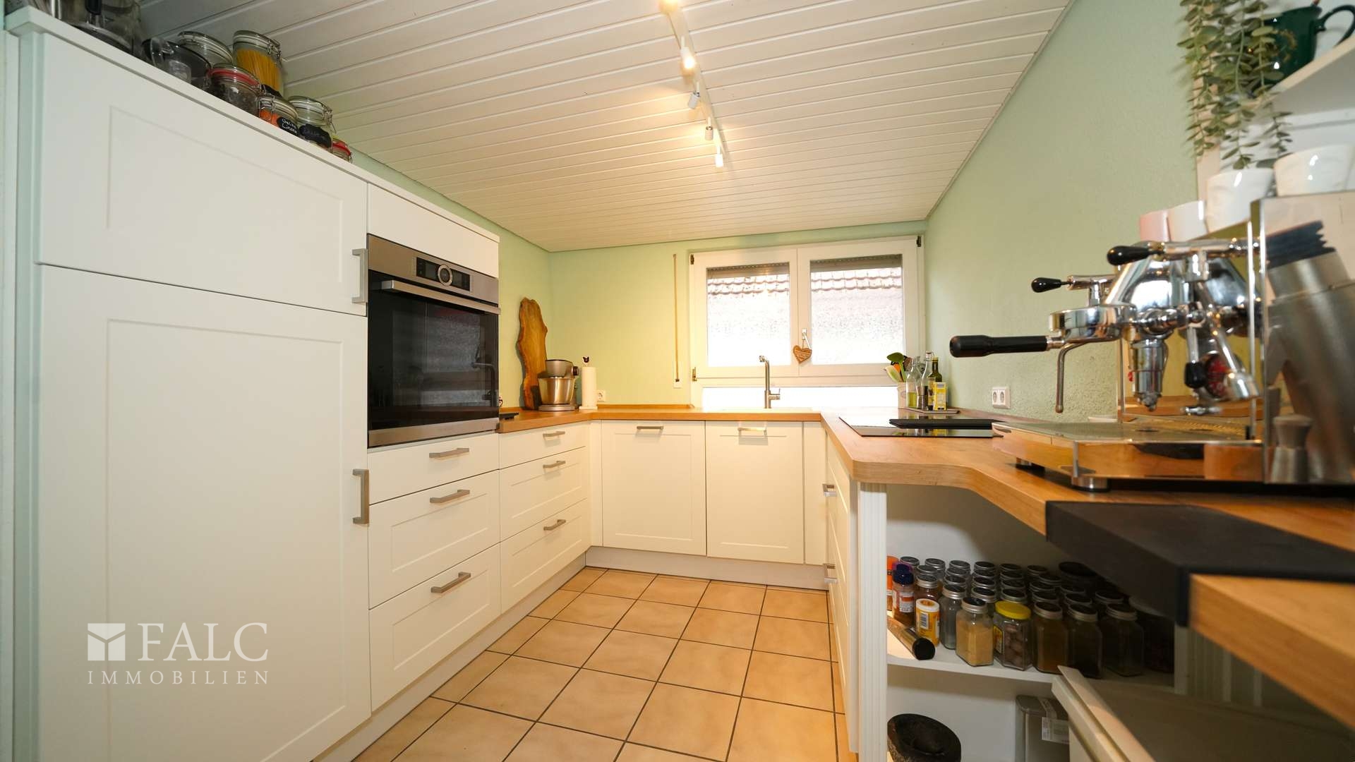 Der Gang zur Espressomaschine in der Küche nebenan ist zum Glück nicht weit, so können Sie direkt durchstarten! Über den Kickstarter des Tages hinaus bietet Ihnen das helle Mobiliar des Raumes viel funktionellen Stauraum, einen Backofen mit Cerankochfeld und Dunstabzug, Spülmaschine sowie Kühlschrank.