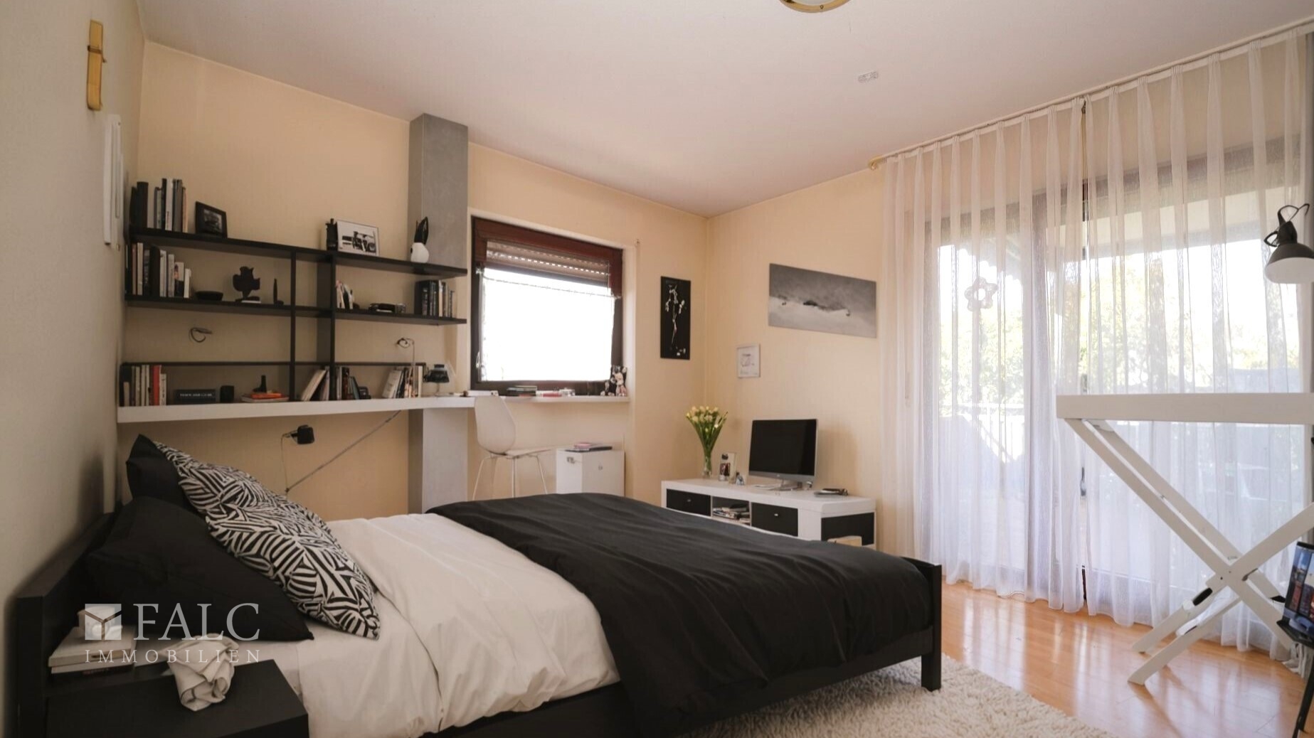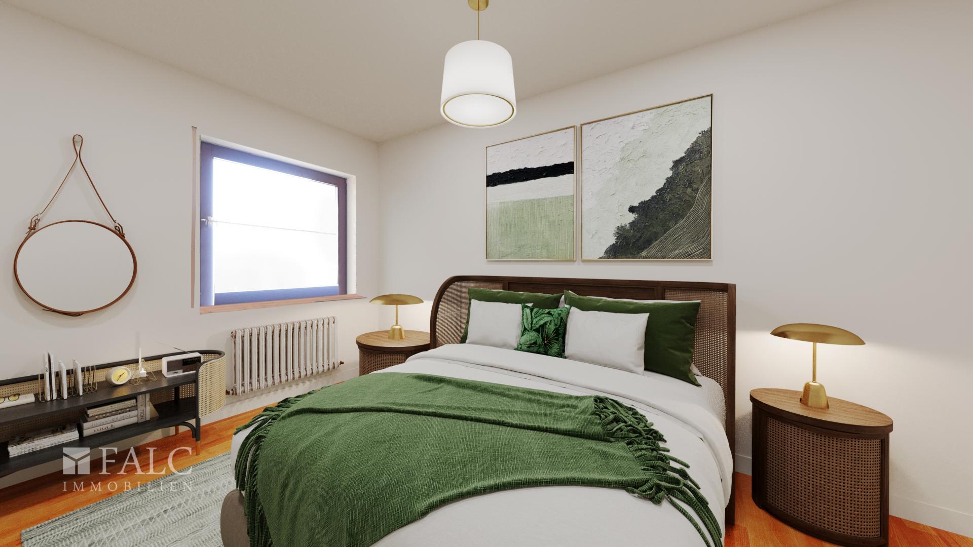 Hell und luftig lockt Sie das Schlafzimmer nebenan ins Land der Träume. Durch das große Fenster kommt viel Licht und Luft herein - herrlich! Zwei geschickt geschnittene Zimmer, eins davon mit Zugang zum Balkon, eignen sich hervorragend als Kinderzimmer, selbstverständlich ist auch der Einsatz als Arbeits-, Ankleide- oder Gästezimmer möglich.