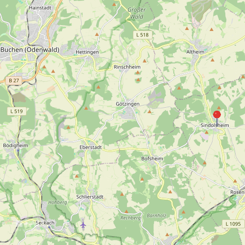 Rosenberg ist eine Gemeinde im Neckar-Odenwald-Kreis im Nordosten Baden-Württembergs etwa 26 km nordöstlich von Mosbach und ist staatlich anerkannter Erholungsort. Die Immobilie befindet sich im Ortsteil Sindolsheim.