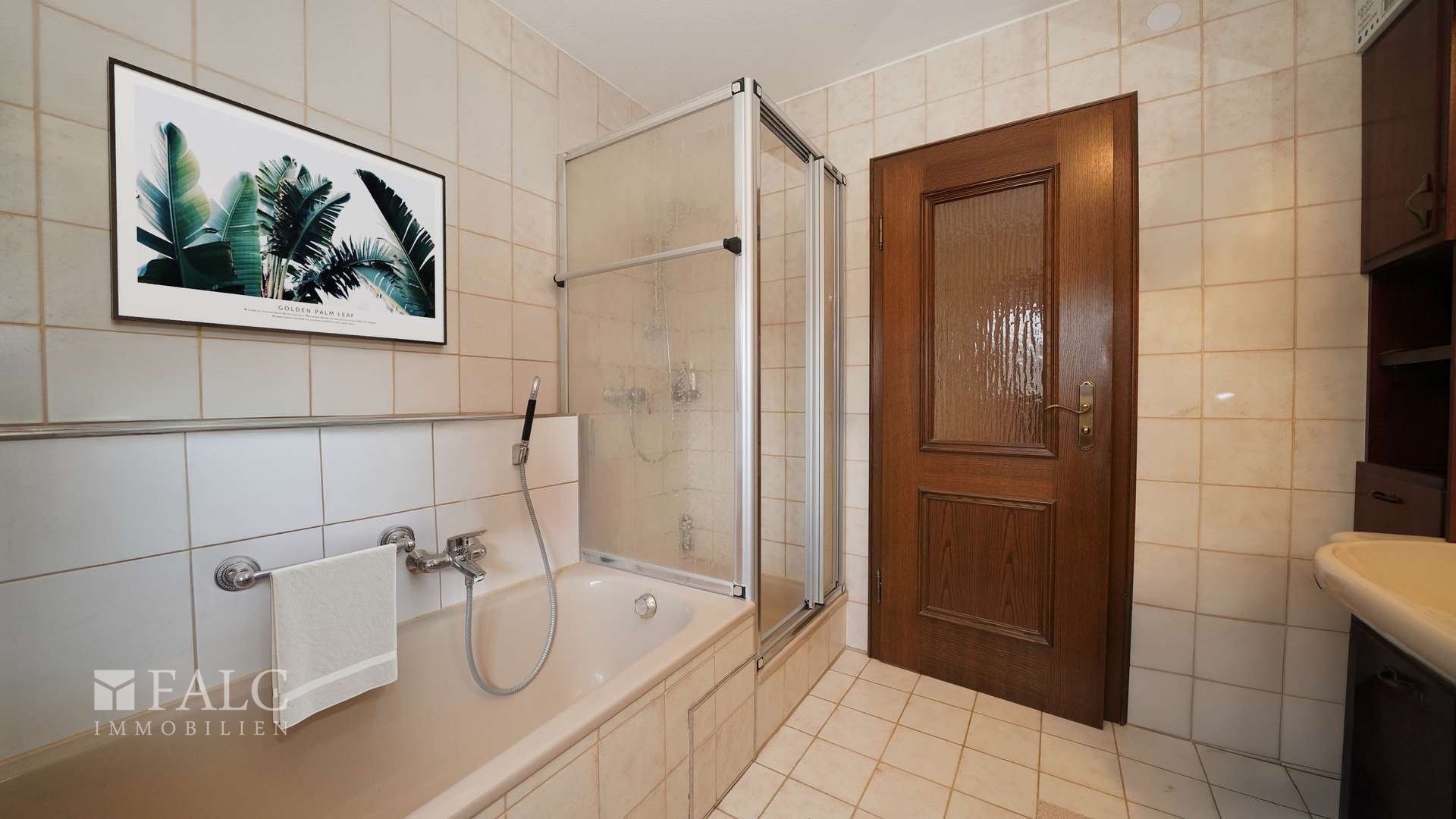 Ein Badezimmer, in dem Sie bei einem heißen Schaumbad die Seele baumeln lassen oder den Tag erfrischt und zeitlich optimiert mit Wasser von oben den Tag beginnen. Durch das Fenster können Sie sich bei Tageslicht stylen. Das praktische, separate WC am Eingang ist in einem stilvollen Beige gehalten und überzeugt mit einem eleganten, muschelförmigen Waschbecken sowie einer dazu passenden Toilettenschüssel. Die raumhoch gefliesten Wände in hellen Tönen unterstreichen das harmonische Design, sorgen für ein freundliches Ambiente und verhindert lästige Störungen beim Entspannen.