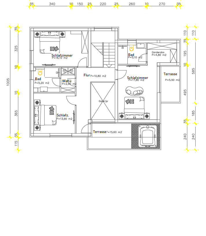 Das Obergeschoss dient als privater Rückzugsort und bietet drei Schlafzimmer, eines davon mit Bad en Suite und eigener Terrasse. Zusätzlich stehen ein weiteres Badezimmer, eine Waschküche, eine offene Galerie sowie eine weitere Terrasse zur Verfügung und schaffen ausreichend Platz für Familie und Gäste. Der liebevoll angelegte Außenbereich mit Pool, Garten und mehreren Terrassen lädt zum Entspannen ein und bietet ein hohes Maß an Privatsphäre.