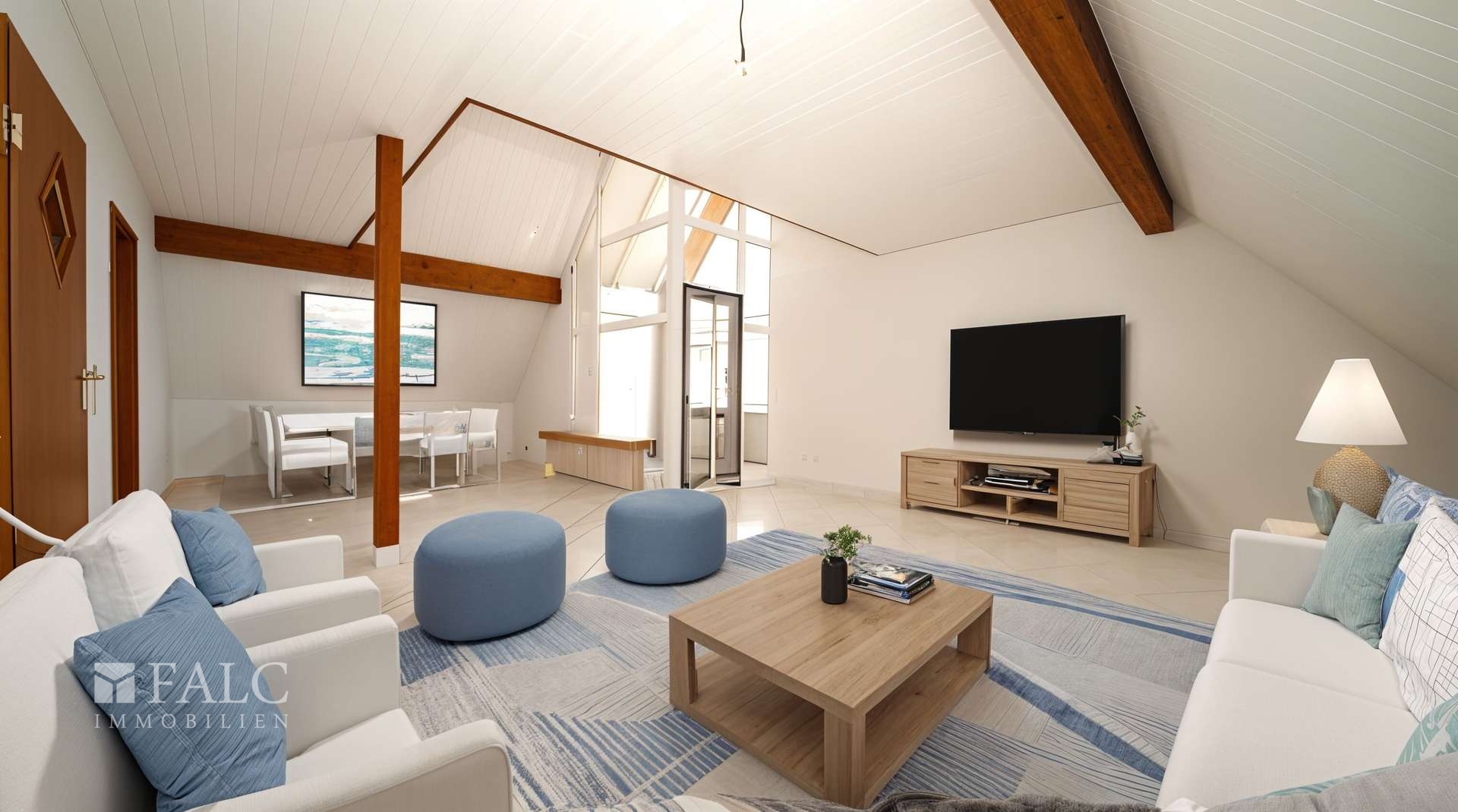 Durch den direkten Zugang zum Dachgeschoss in dieser Wohnung bietet sich die reizvolle Möglichkeit, die Decke zu öffnen – etwa für eine lichtdurchflutete Galerie oder ein zusätzliches Schlafzimmer mit besonderem Charme.
