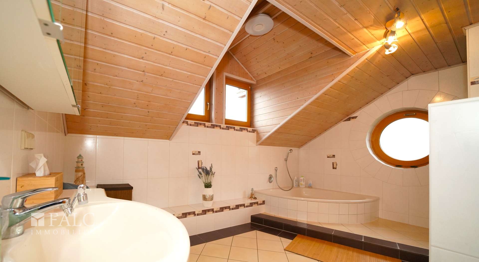 Beheizt wird das Haus über eine Öl-Zentralheizung. Isolierverglaste Fenster mit farblich abgestimmten Holzrahmen sorgen für angenehme Lichtverhältnisse, integrierte Deckenspots schaffen auch am Abend eine stimmungsvolle Atmosphäre. Die Wohnräume sind überwiegend mit pflegeleichten Fliesen ausgestattet, im Wohnzimmer unterstreicht hochwertiges Laminat in warmer Holzoptik das behagliche Ambiente.
