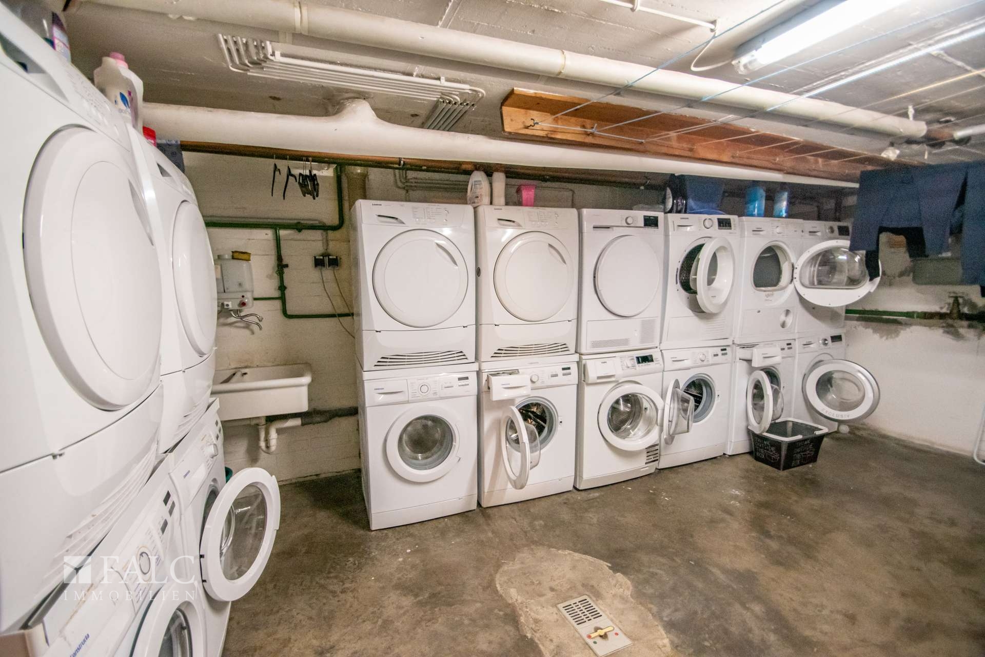 Im Kellerwaschraum steht zu jeder Wohnung eine eigene Waschmaschine und ein eigener Wäschetrockner inklusive zu Verfügung.