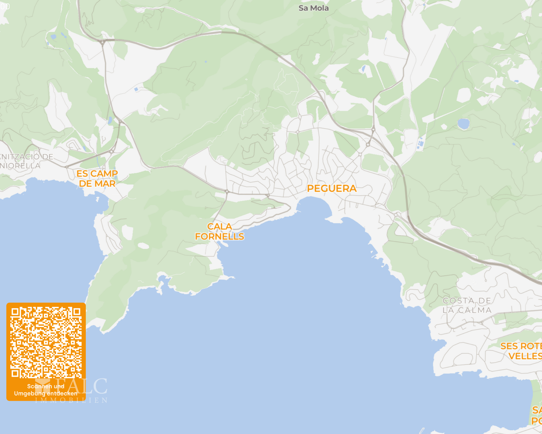 Die Lage verbindet Ruhe und Privatsphäre mit einer sehr guten Erreichbarkeit: Innerhalb weniger Minuten sind sowohl die Strände von Paguera als auch Golfplätze und Yachthäfen in Santa Ponsa oder Port d’Andratx erreichbar. Die Inselhauptstadt Palma liegt nur ca. 20 Autominuten entfernt, der internationale Flughafen etwa 30 Minuten.