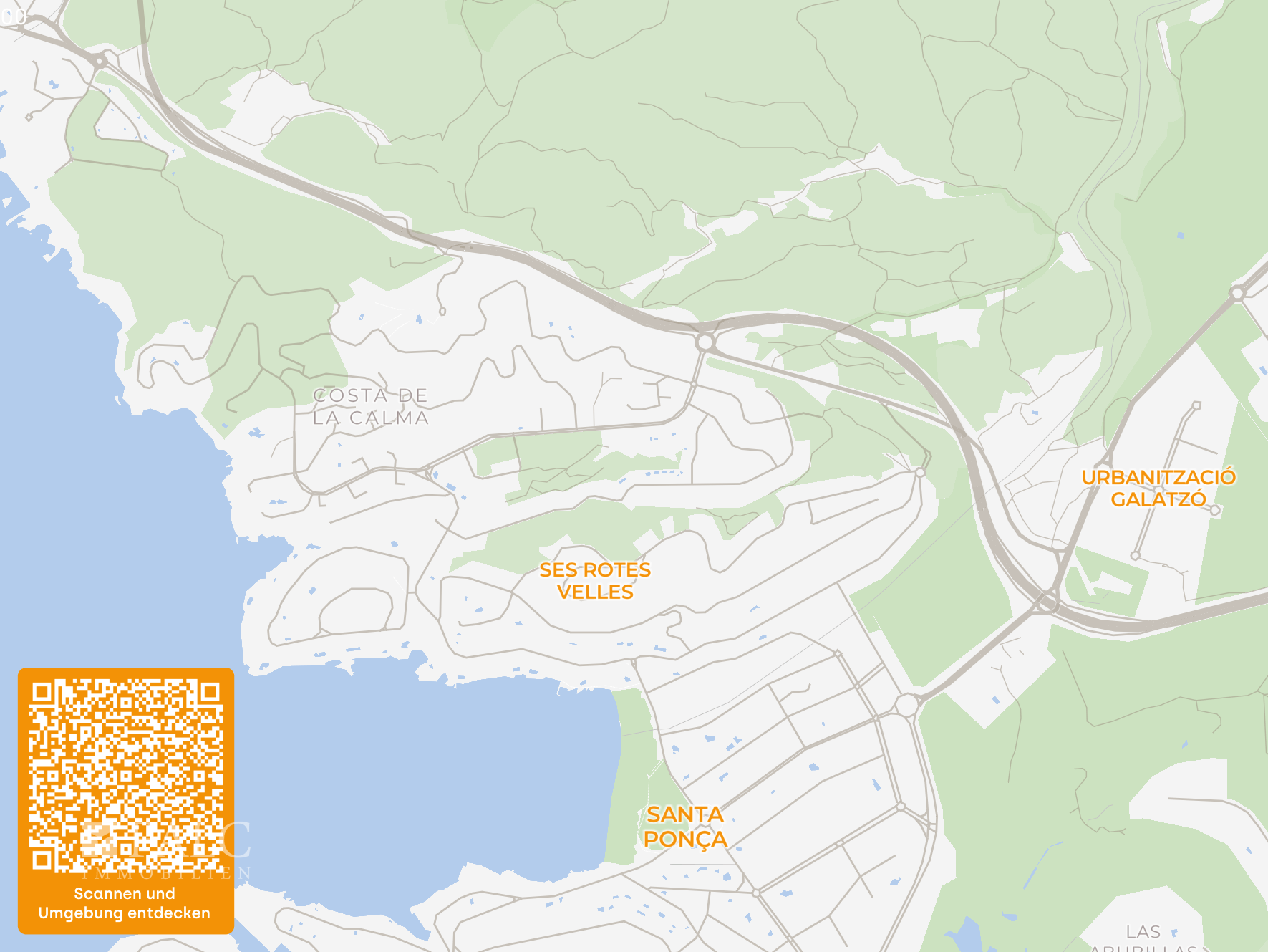 Ein besonderes Highlight ist der naturnahe Fußweg durch den Wald, über den man Richtung Küste und weiter bis zu den Stränden von Peguera gelangen kann. Die weitläufigen Sandstrände von Santa Ponsa sind bequem in kurzer Zeit mit dem Auto erreichbar und bieten eine sehr gute Infrastruktur mit Restaurants, Strandbars und Einkaufsmöglichkeiten.