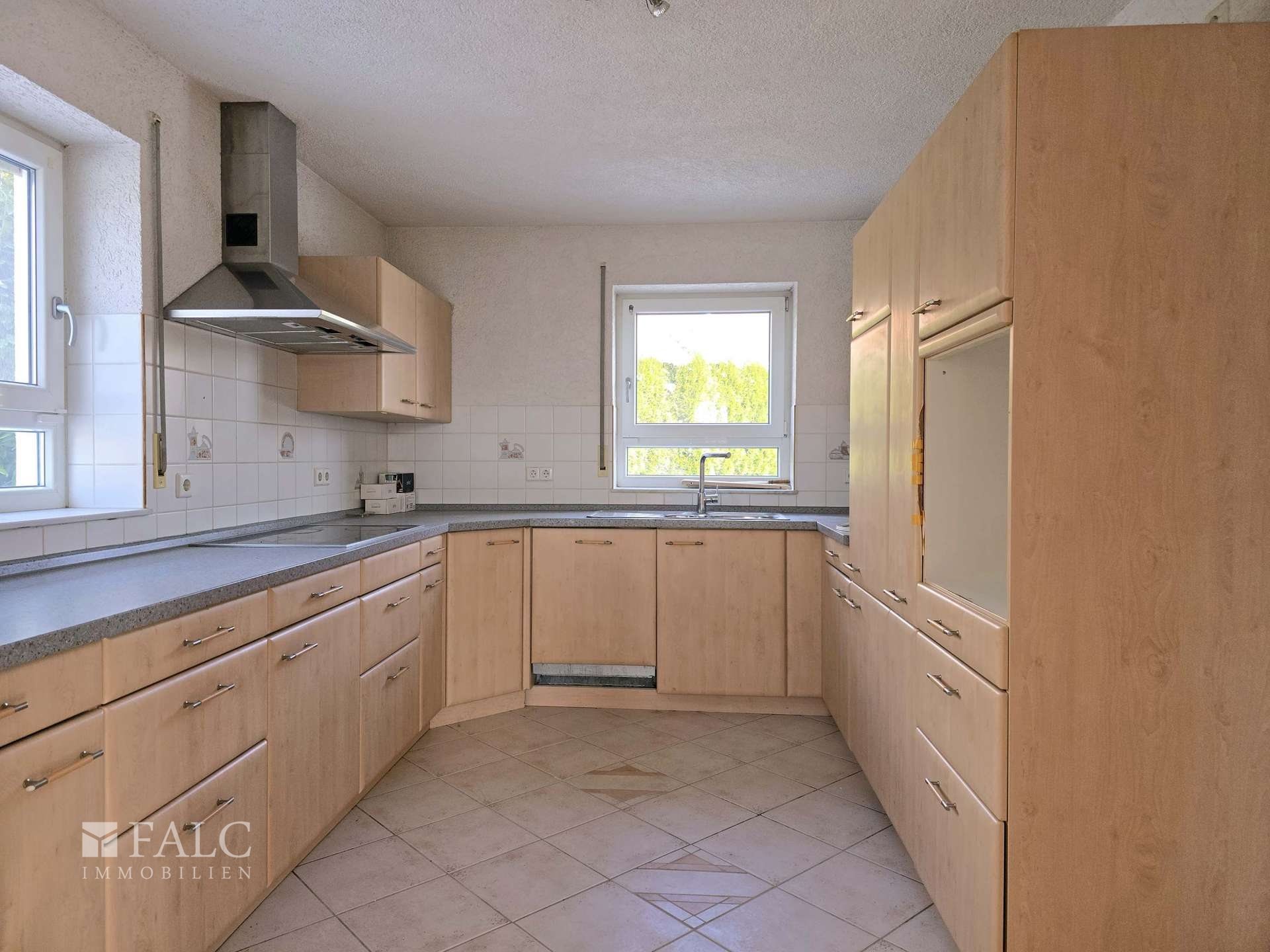 Die Einbauküche ist funktional gestaltet und bietet genügend Arbeitsfläche. Vom Wohnbereich aus haben Sie direkten Zugang zur Terrasse und in den Garten, wo Sie entspannte Stunden im Grünen genießen können.