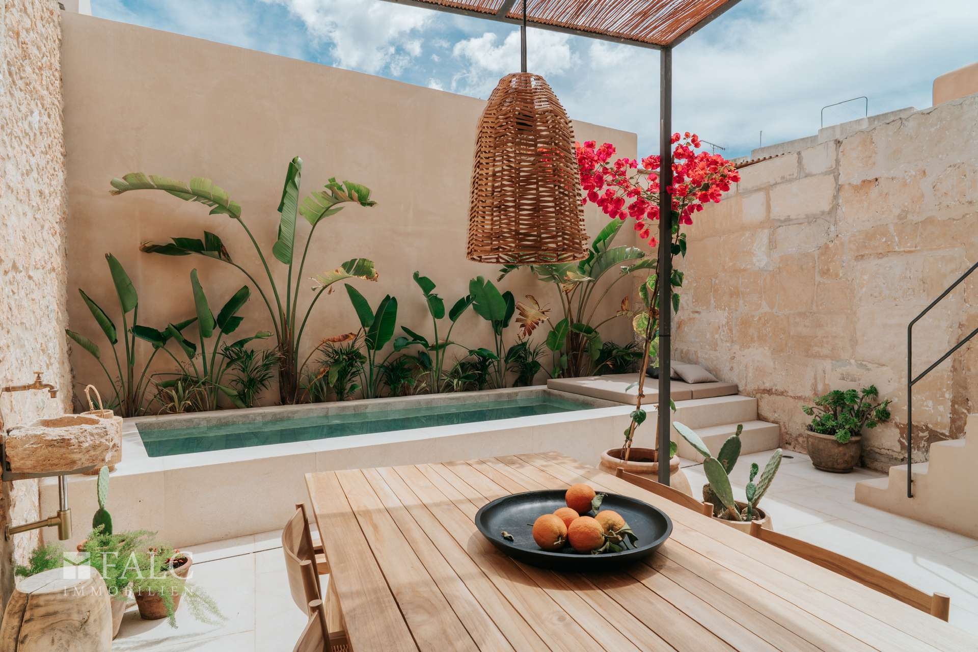 Ein besonderes Highlight ist die charmante Terrasse mit privatem Pool – Ihr persönlicher Rückzugsort für ruhige Stunden unter der Sonne oder laue Abende im Kreis von Freunden. Hier verschmelzen Innen- und Außenbereich zu einem Lebensgefühl, das typisch für die Insel ist: elegant, entspannt und authentisch.