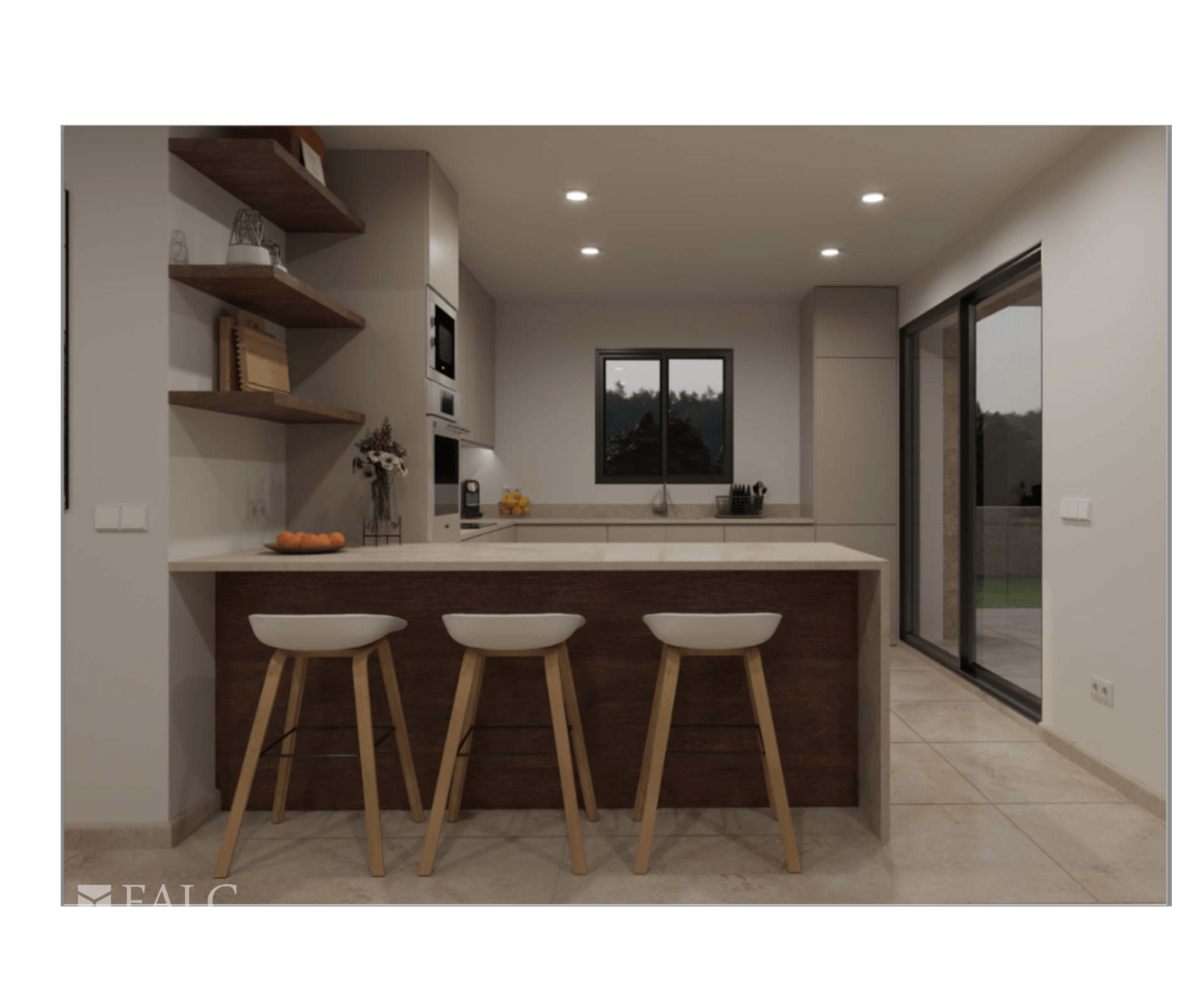 Im Erdgeschoss öffnet sich ein weitläufiger Wohn- und Essbereich mit hochwertiger Designküche und direktem Zugang zur sonnenverwöhnten Terrasse. Große Schiebetüren verbinden das Innere nahtlos mit dem Garten, in dessen Zentrum der stilvolle Pool für Erfrischung und Erholung sorgt – ein Ort, an dem sich mediterrane Leichtigkeit und modernes Wohnen perfekt ergänzen.