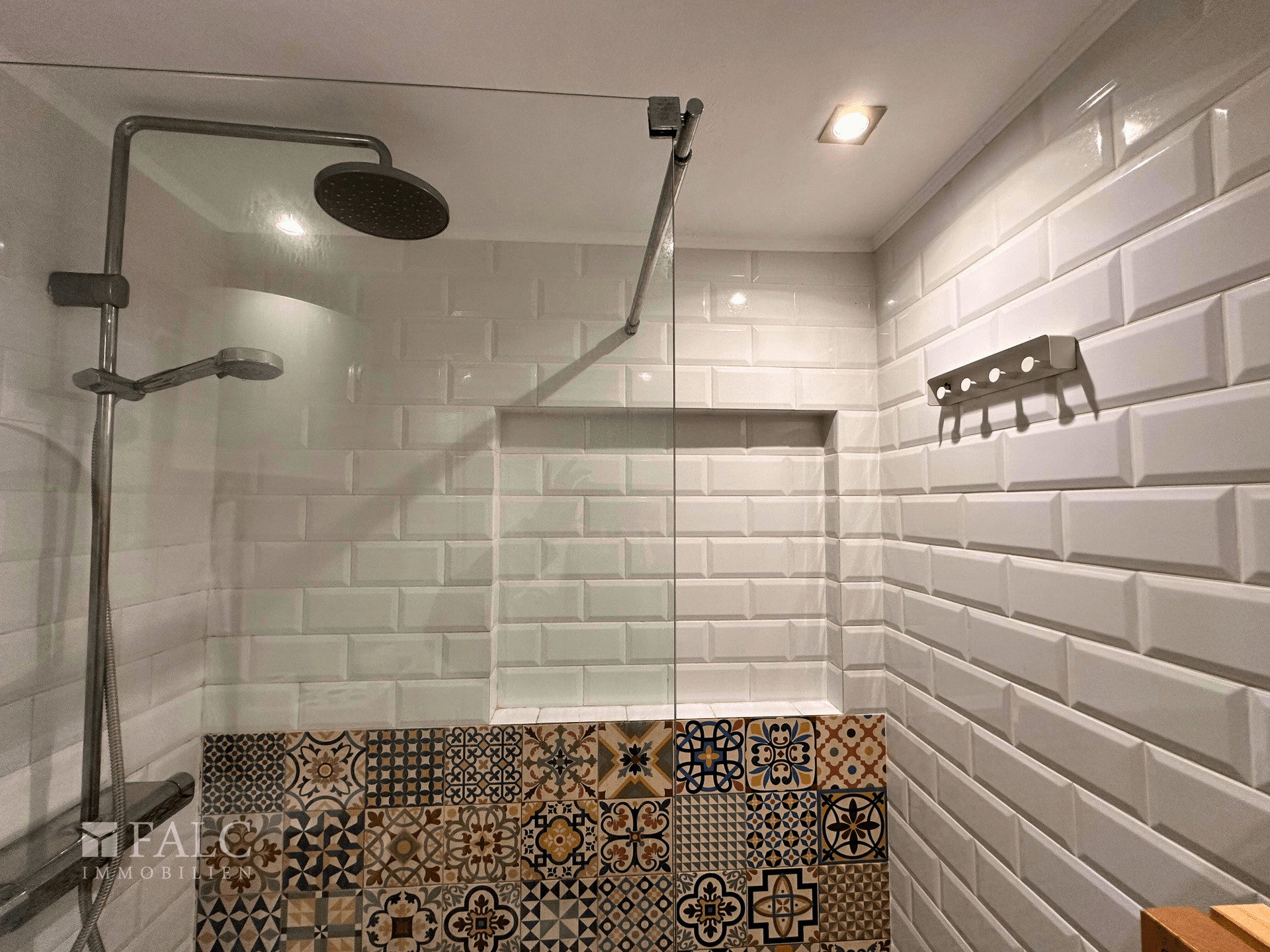Das Studio verfügt über ein modernes Duschbad sowie eine voll ausgestattete Studioküche, die keine Wünsche für den täglichen Bedarf offenlässt. Doppelt verglaste Fenster sorgen für Ruhe und angenehmes Wohnklima, während Klimaanlage und elektrische Heizung ganzjährig für optimalen Komfort garantieren. Maßgefertigte Einbauschränke bieten cleveren Stauraum und unterstreichen die funktionale Raumgestaltung.