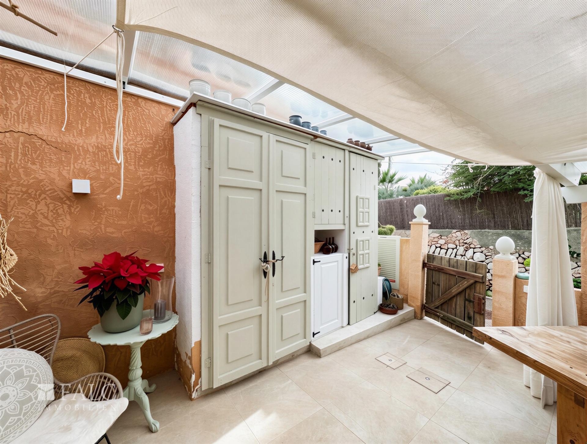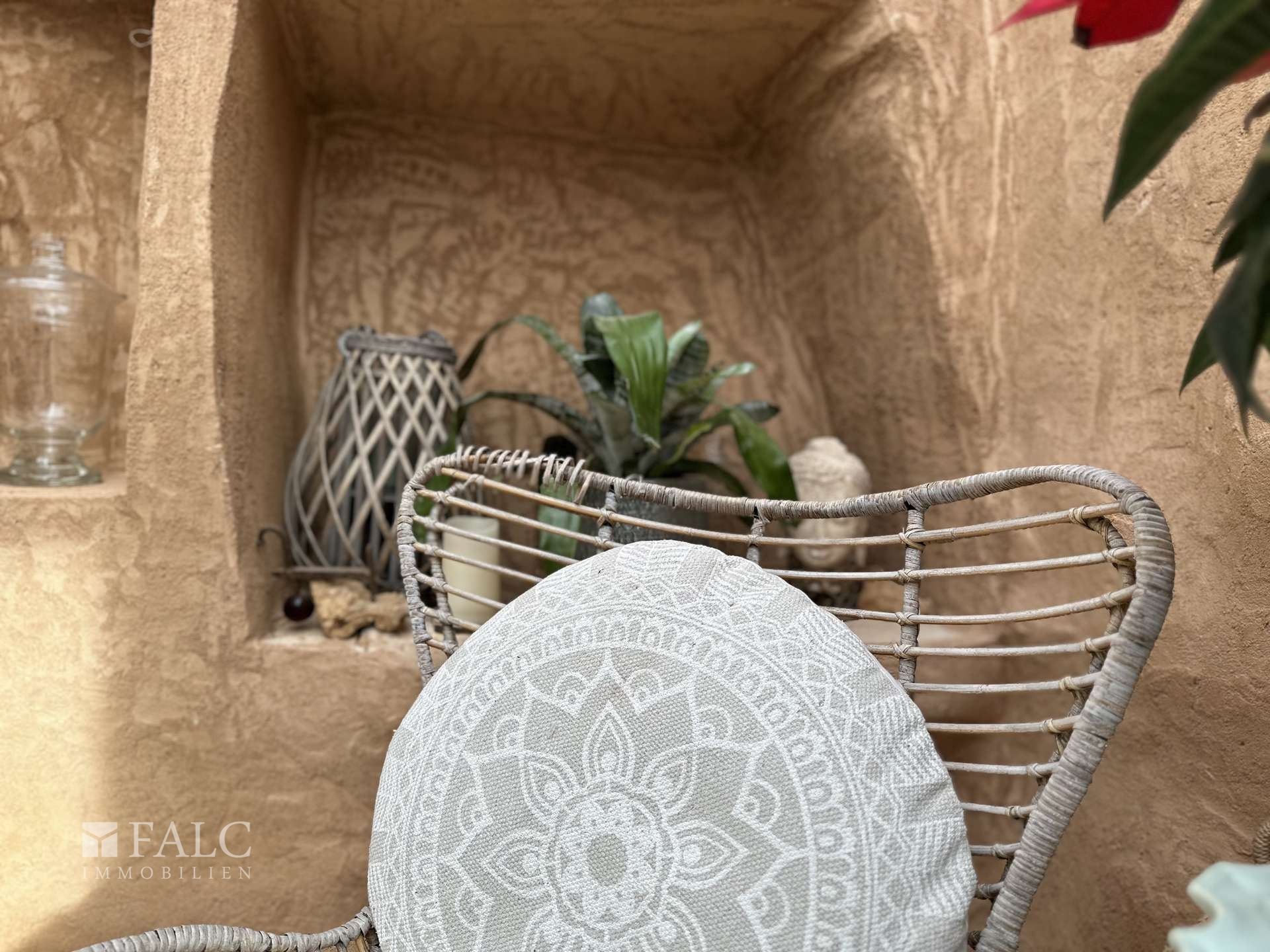 Ein besonderes Highlight ist die Naturstein-Terrasse, die den Außenbereich harmonisch ergänzt und zum Entspannen, Verweilen oder geselligen Beisammensein einlädt. Das ca. 141 m² große Grundstück ist pflegeleicht und perfekt auf das Haus abgestimmt – ideal für alle, die mediterranes Lebensgefühl ohne großen Aufwand genießen möchten.