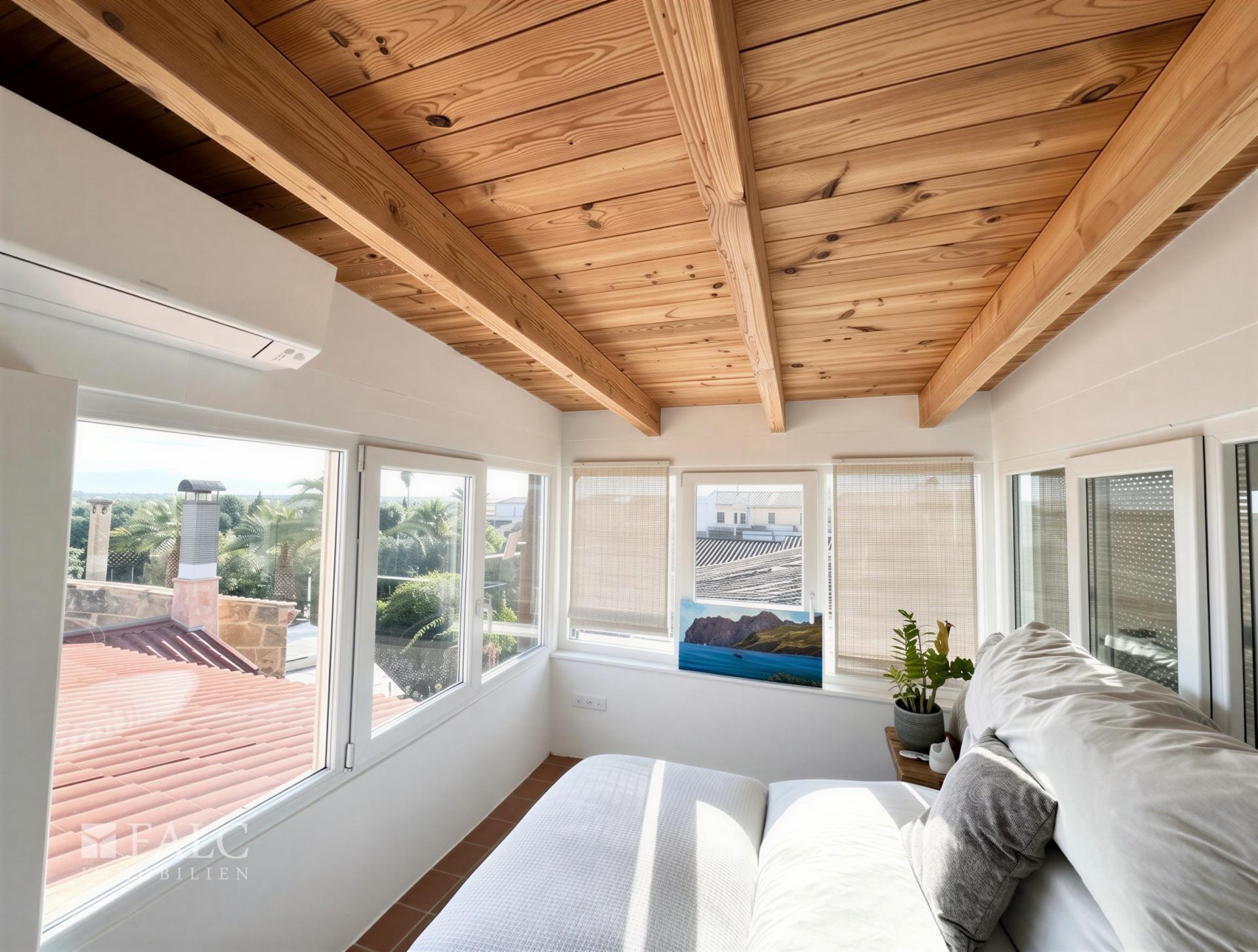 Auf einer Wohn- bzw. Gesamtfläche von ca. 155 m² bietet das Haus ein durchdachtes Raumkonzept mit drei Schlafzimmern und zwei Bädern, ideal sowohl als dauerhafter Wohnsitz als auch als stilvolles Feriendomizil. Zwei Kamine sorgen für eine warme, einladende Atmosphäre und unterstreichen den individuellen Charakter des Hauses. Klimaanlagen gewährleisten ganzjährig ein angenehmes Raumklima.