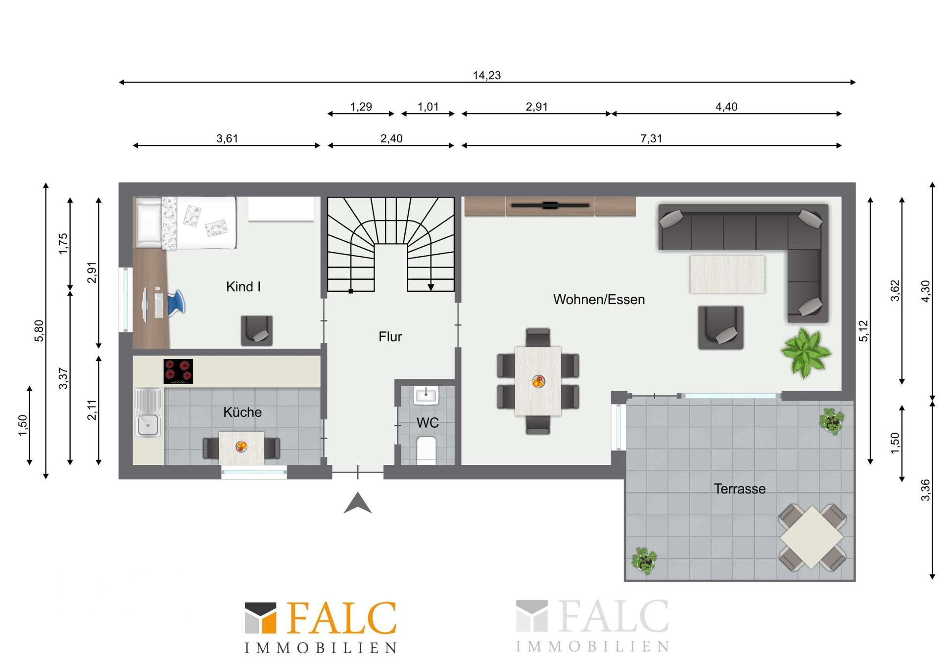 • Großzügiger Wohn- und Essbereich mit guter räumlicher Strukturierung