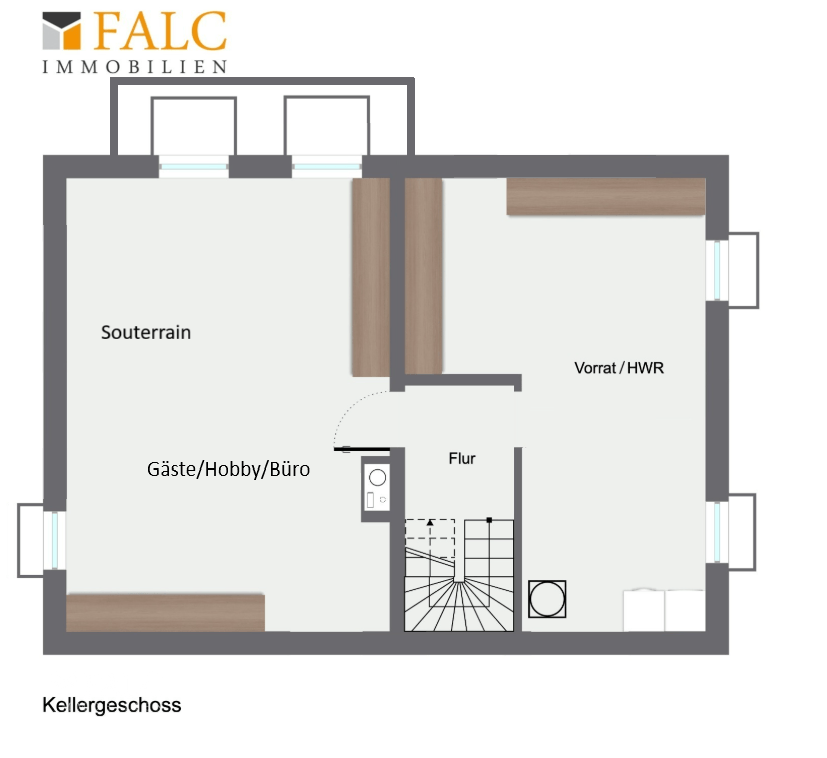 Das Kellergeschoss umfasst einen geräumigen Hauswirtschafts- und Vorratsraum sowie ein rund 40 m² großes, helles Souterrain, das durch seine angenehme Helligkeit überzeugt.