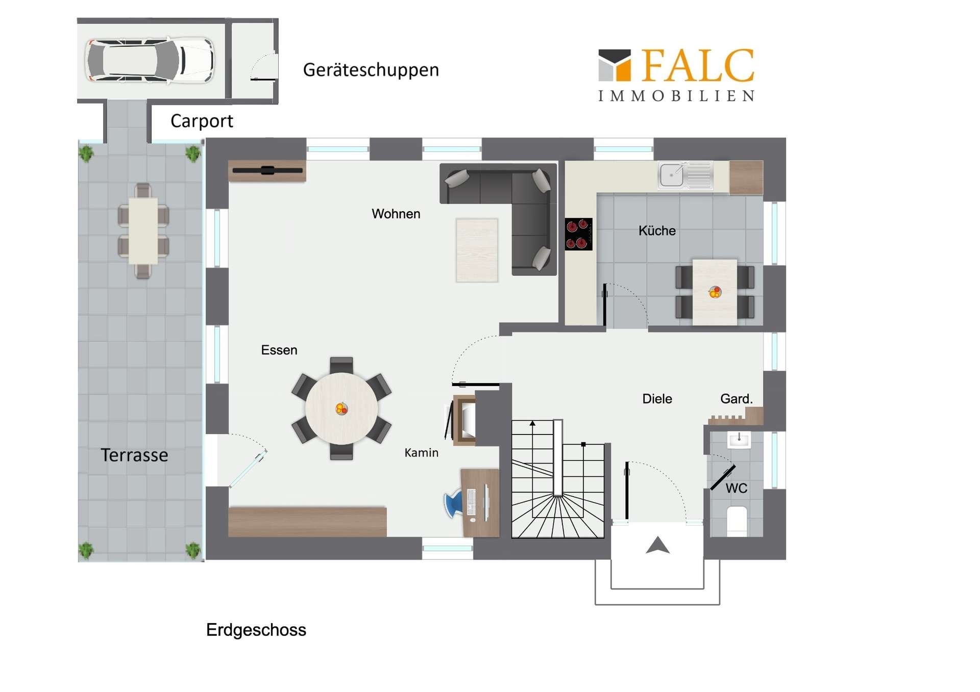 • Großzügige Terrasse mit Gartenzugang