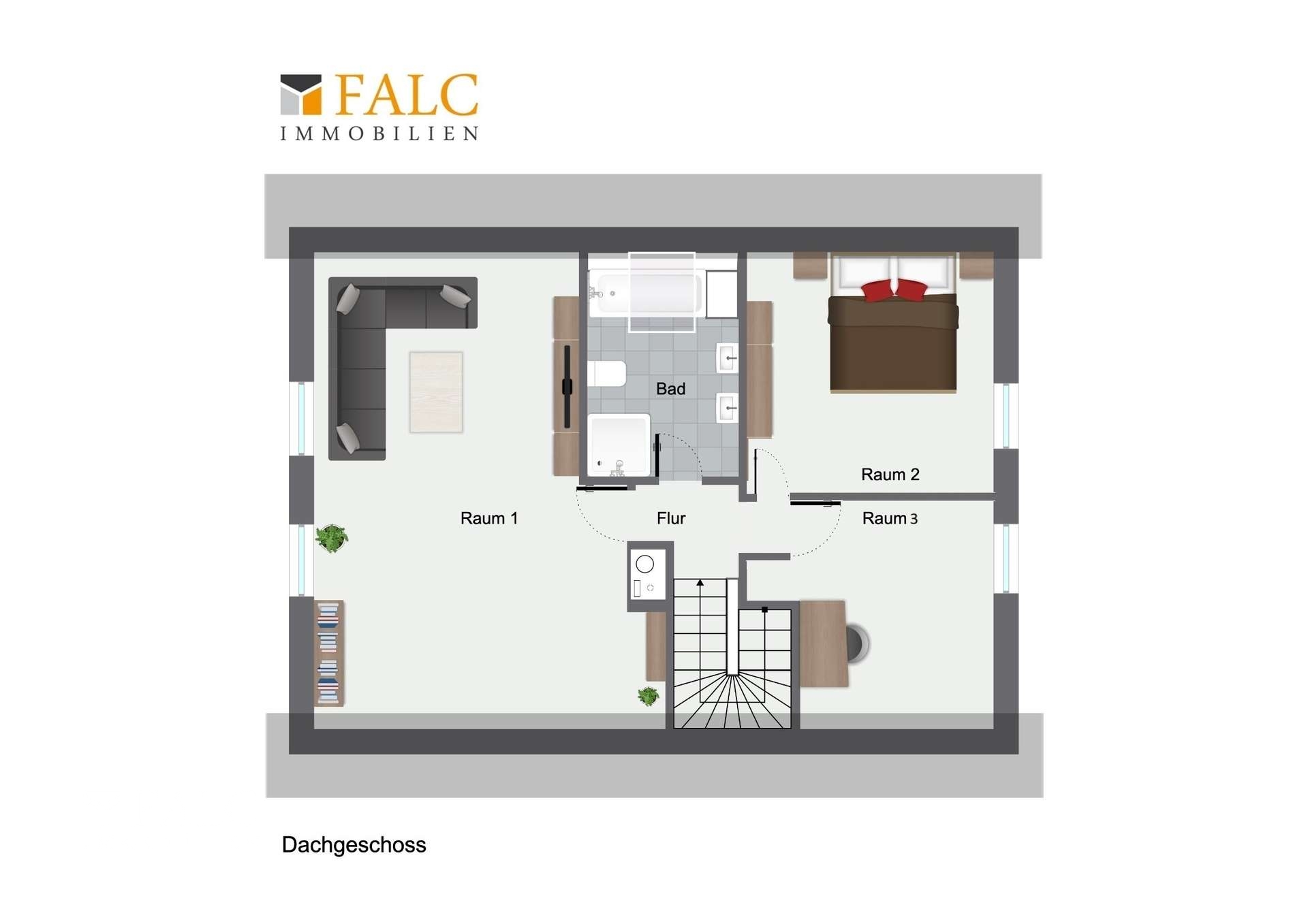 • Drei Schlafzimmer (im Dachgeschoss)