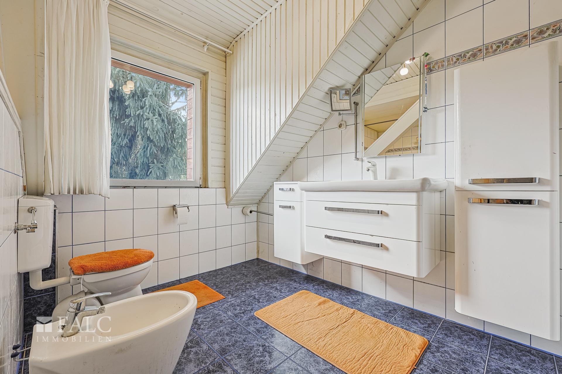 Im Obergeschoss sind vier weitere Zimmer untergebracht – vielseitig nutzbar als Kinder-, Eltern- oder Arbeitszimmer. Das großzügige Familienbad mit Wanne, Bidet und WC wurde ebenfalls modernisiert und bietet alles für den Familienalltag.
