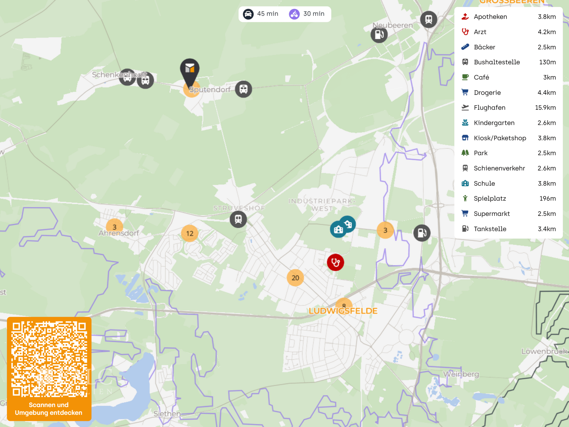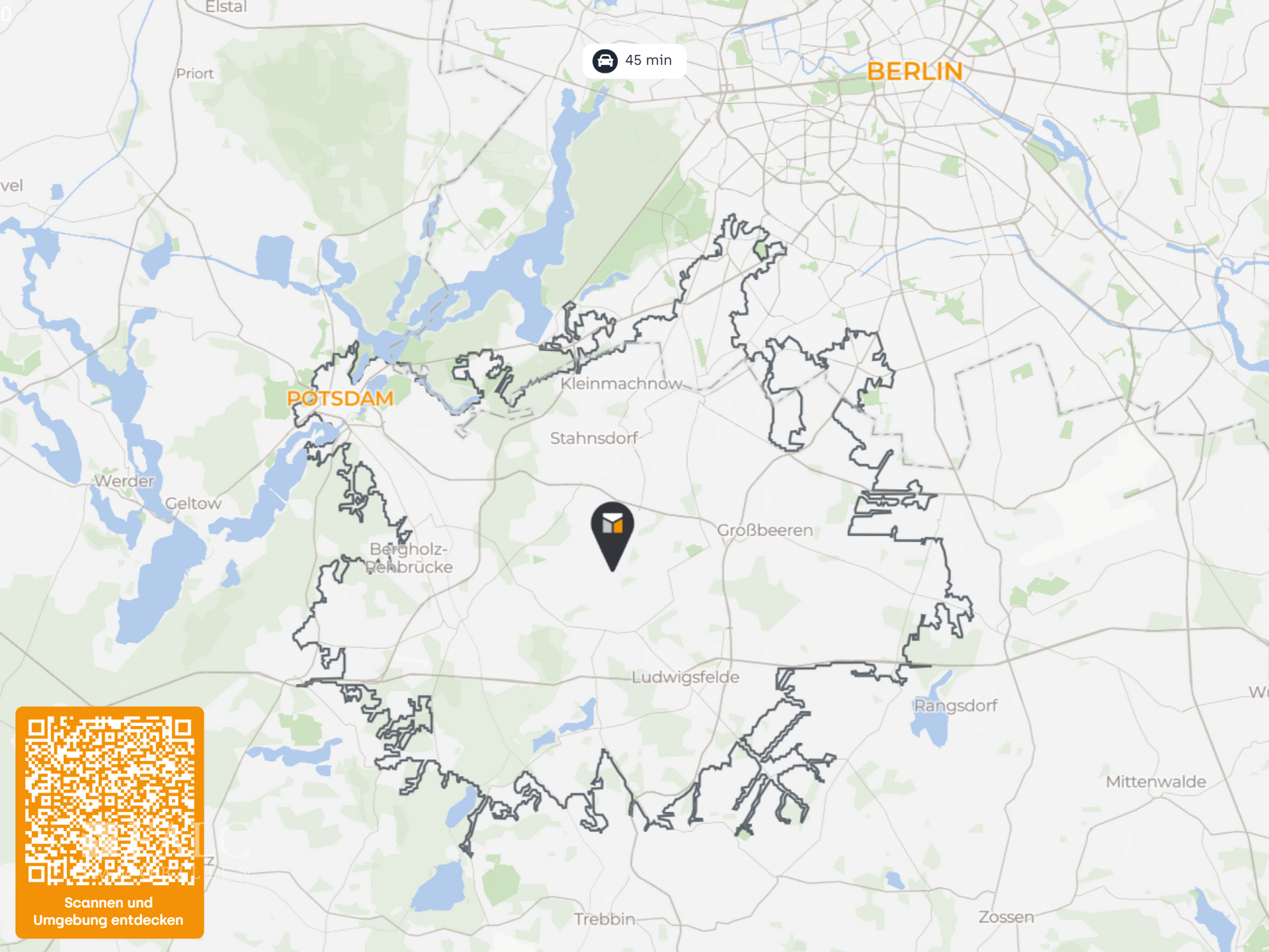 Die Berliner Stadtgrenze erreichen Sie in nur ca. 20 Minuten, ebenso zügig gelangen Sie nach Potsdam oder zum Flughafen BER. Auch die umliegenden Städte Ludwigsfelde, Teltow und Stahnsdorf sind in wenigen Minuten mit dem Auto erreichbar und bieten alles, was man für den Alltag braucht – von Einkaufsmöglichkeiten über ärztliche Versorgung bis hin zu Schulen und Freizeiteinrichtungen.