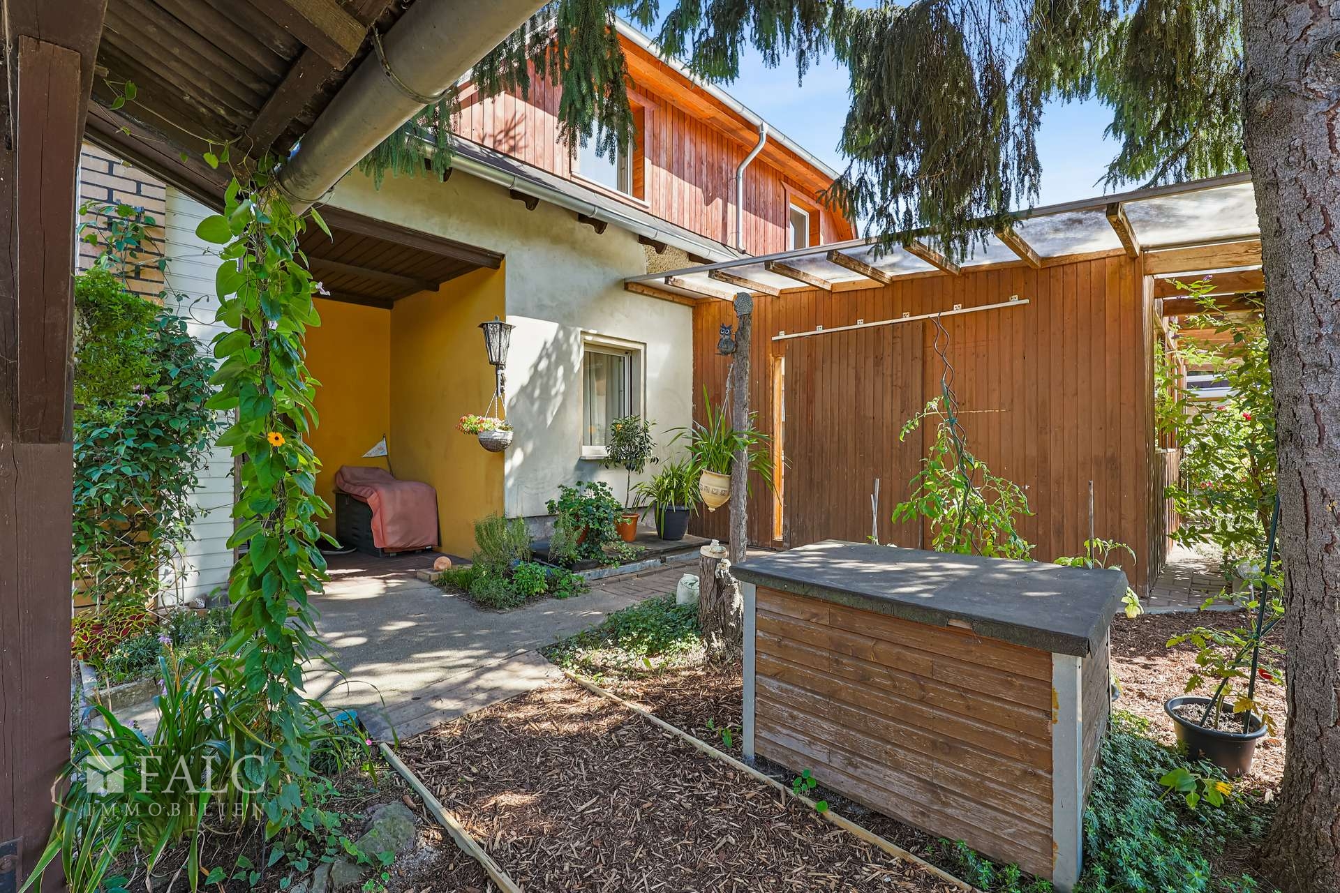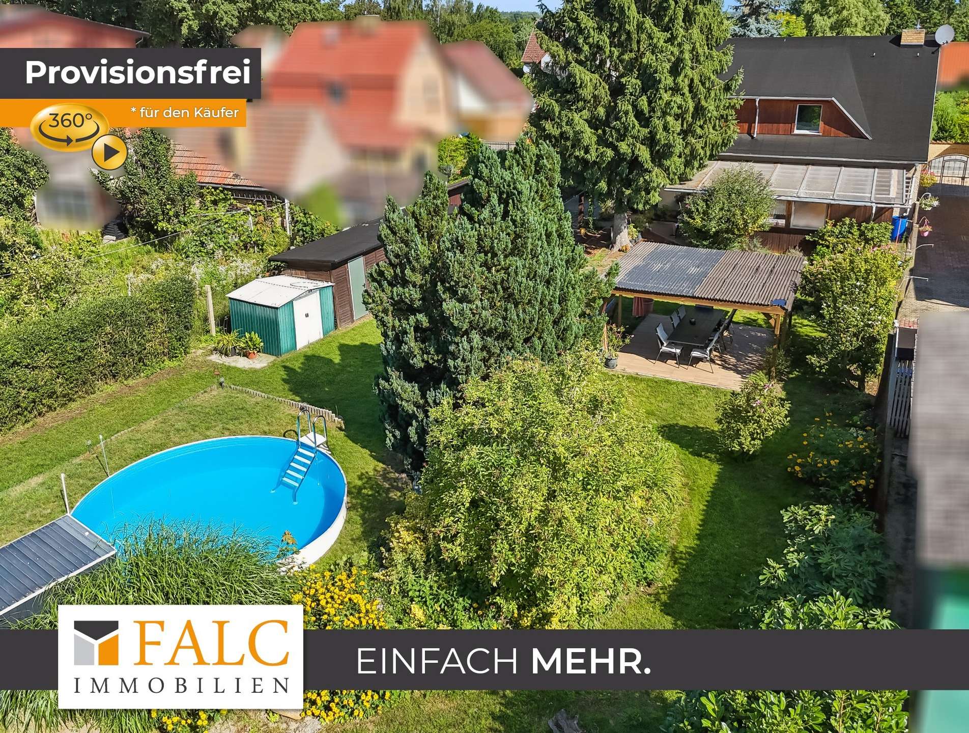 Der Garten ist mit Terrasse und Pool ein echtes Familienparadies – viel Platz zum Spielen, Gärtnern oder einfach zum Entspannen. Zwei Carport-Stellplätze bieten praktischen Komfort. Schuppen bieten zusätzlich Abstellmöglichkeiten für ein aufgeräumtes Ambiente. Darüber hinaus befindet sich im hinteren Teil des Gartens ein großes Zelt auf einem Fundament inkl. Hebebühne, welches nach Absprache übernommen werden kann.