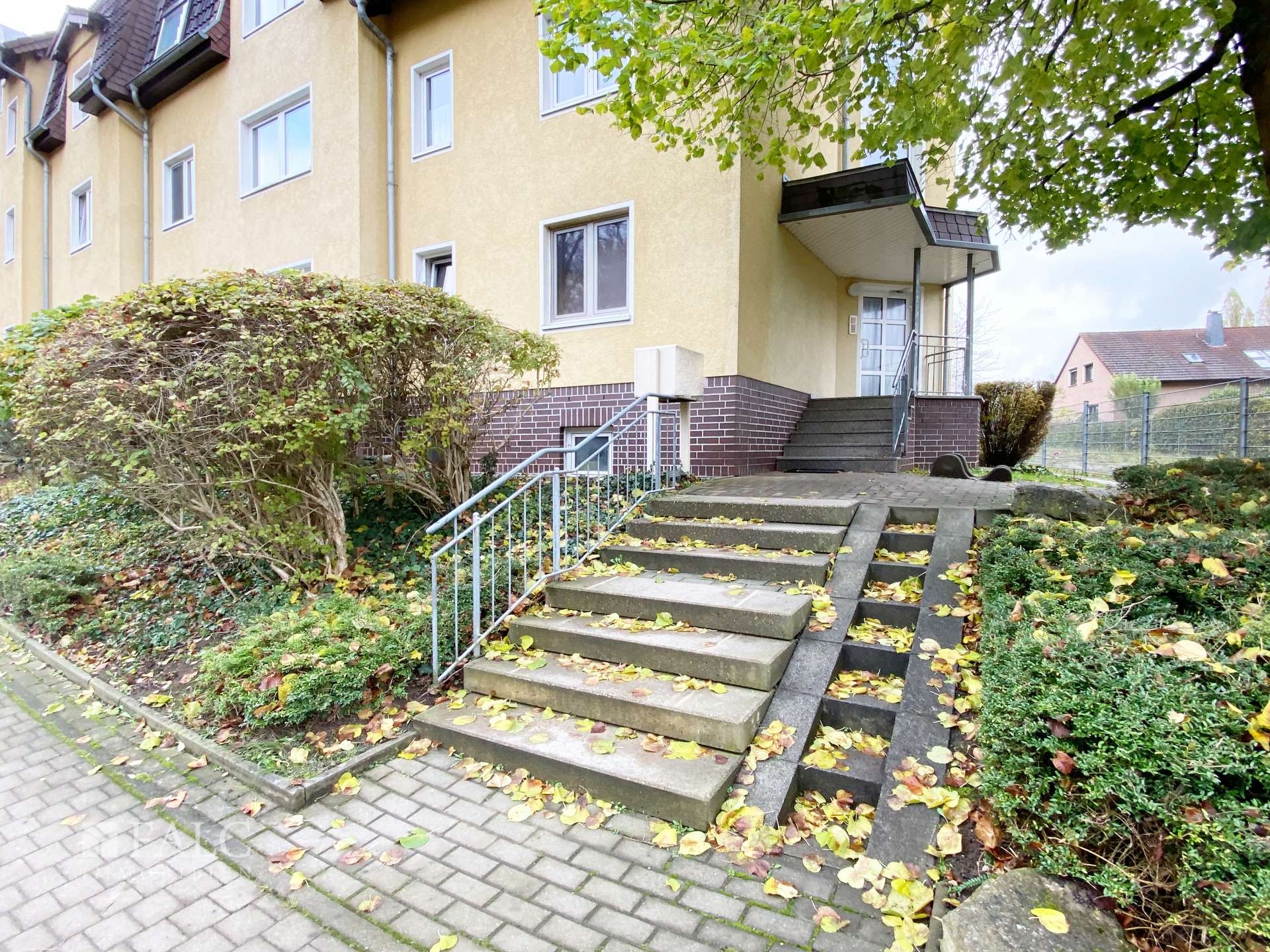 Während die Straßenseite vom lebendigen Verkehr geprägt ist, öffnet sich die Rückseite des Gebäudes zu einem ruhigen, parkähnlichen Grundstück mit Süd-Terrasse. Hier bietet sich ein angenehmes Umfeld für Pausen und Erholung. Gegenüber liegt das Webicht, ein beliebtes Naherholungsgebiet, das sich ideal für Spaziergänge in der Natur eignet.