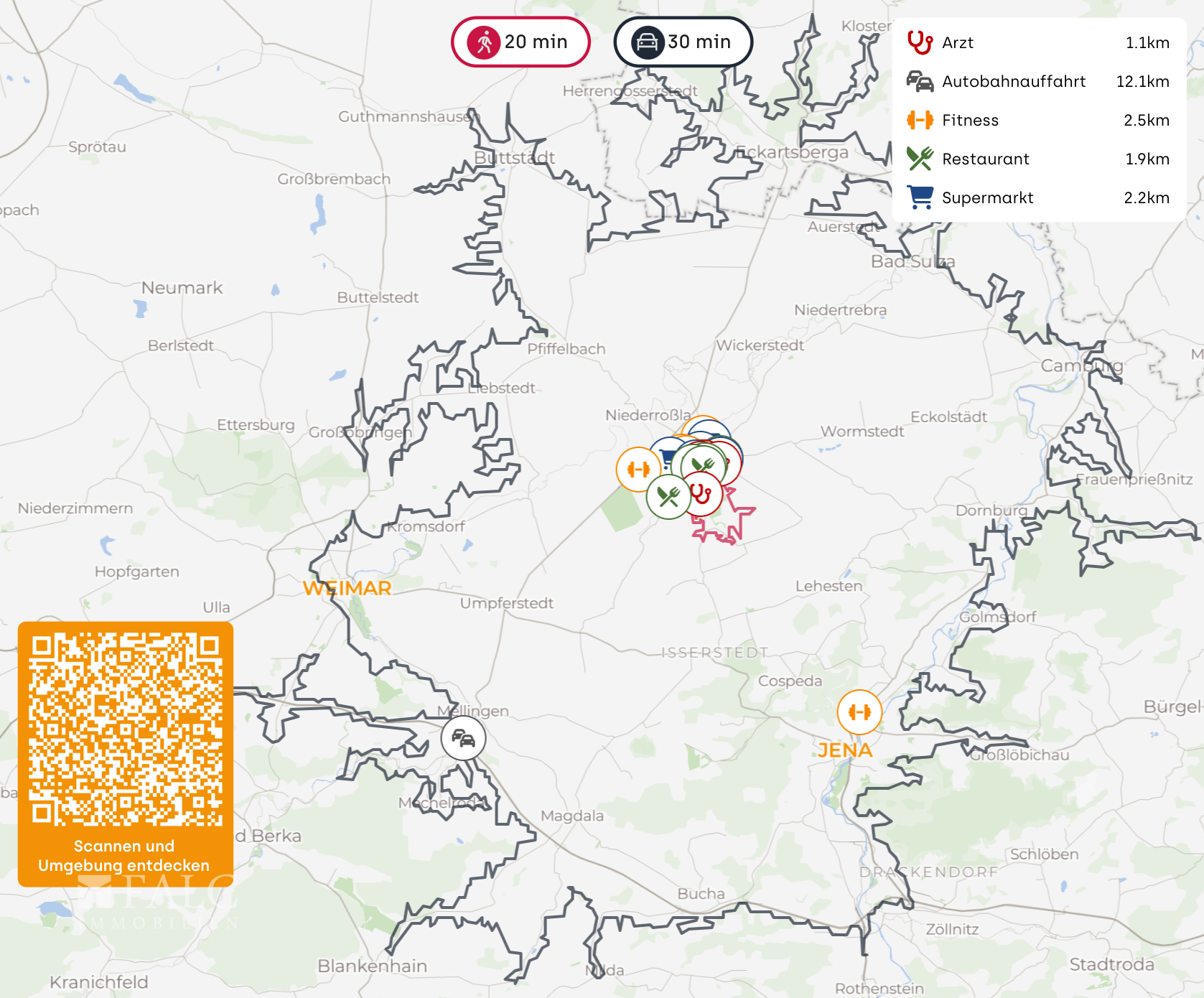 Die Klassikerstadt Weimar mit ihren einzigartigen kulturellen Schätzen erreichen Sie in nur 20–30 Minuten, ebenso Jena mit seiner renommierten Universität, pulsierender Wirtschaft und lebendiger Szene. Auch Erfurt, die Landeshauptstadt, ist schnell erreichbar.