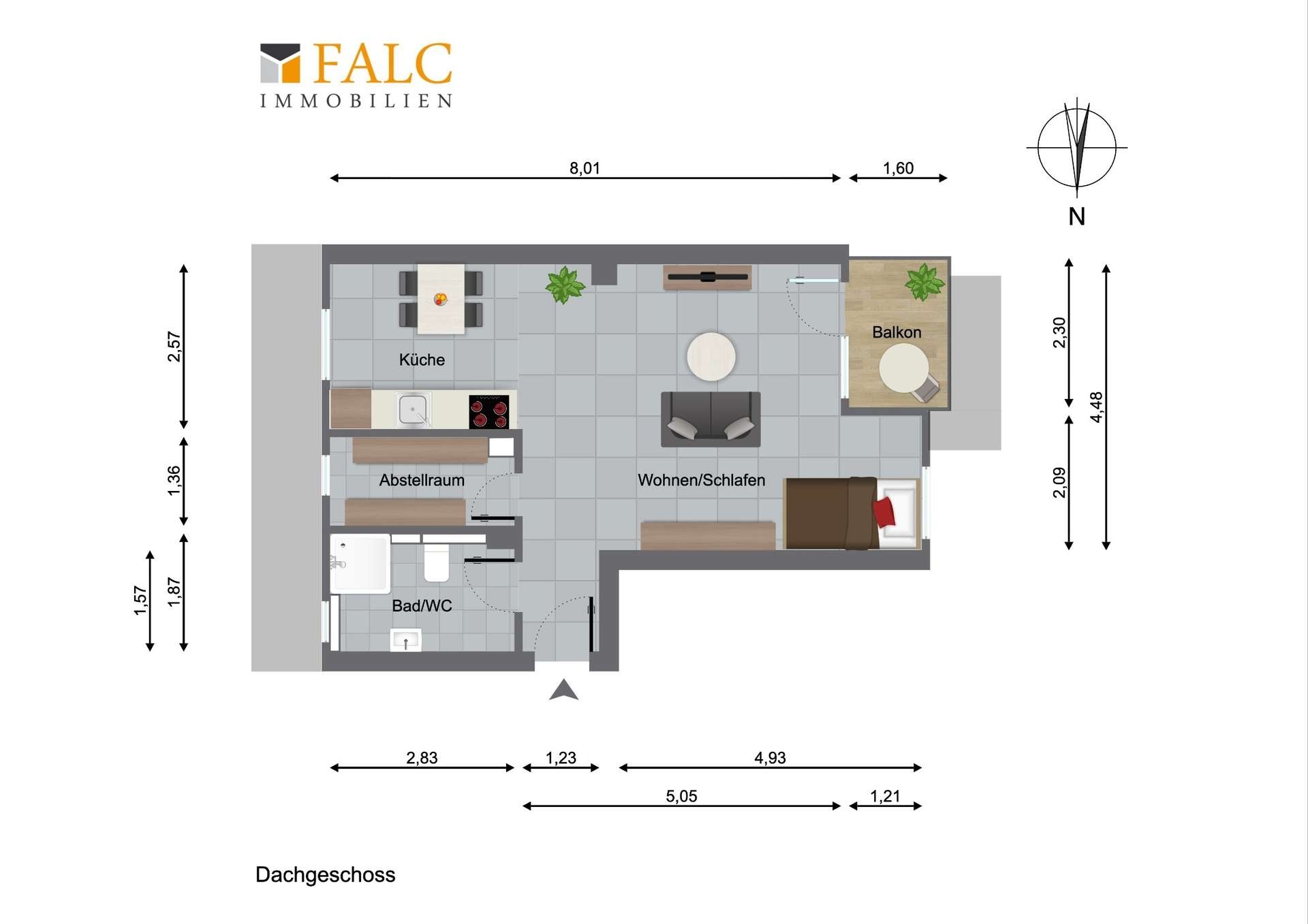 Auf rund 45 m² entfaltet sich ein clever durchdachtes Raumkonzept: Von der zentralen, offenen Diele aus gelangen Sie in alle Bereiche, während der lichtdurchflutete Wohn- und Schlafbereich zusammen mit der offenen Küche eine einladende, harmonische Wohnatmosphäre schafft. Von der Küche aus haben Sie einen schönen Blick ins Grüne. Ein praktischer Abstellraum, ein modernes Tageslichtbad mit Blick auf eine Apfelbaum-Plantage und Gas-Etagenheizung sowie ein kleiner Balkon in Süd-West-Ausrichtung, vervollständigen dieses stimmige Wohnkonzept – ideal geeignet für Singles, Berufstätige oder Kapitalanleger.