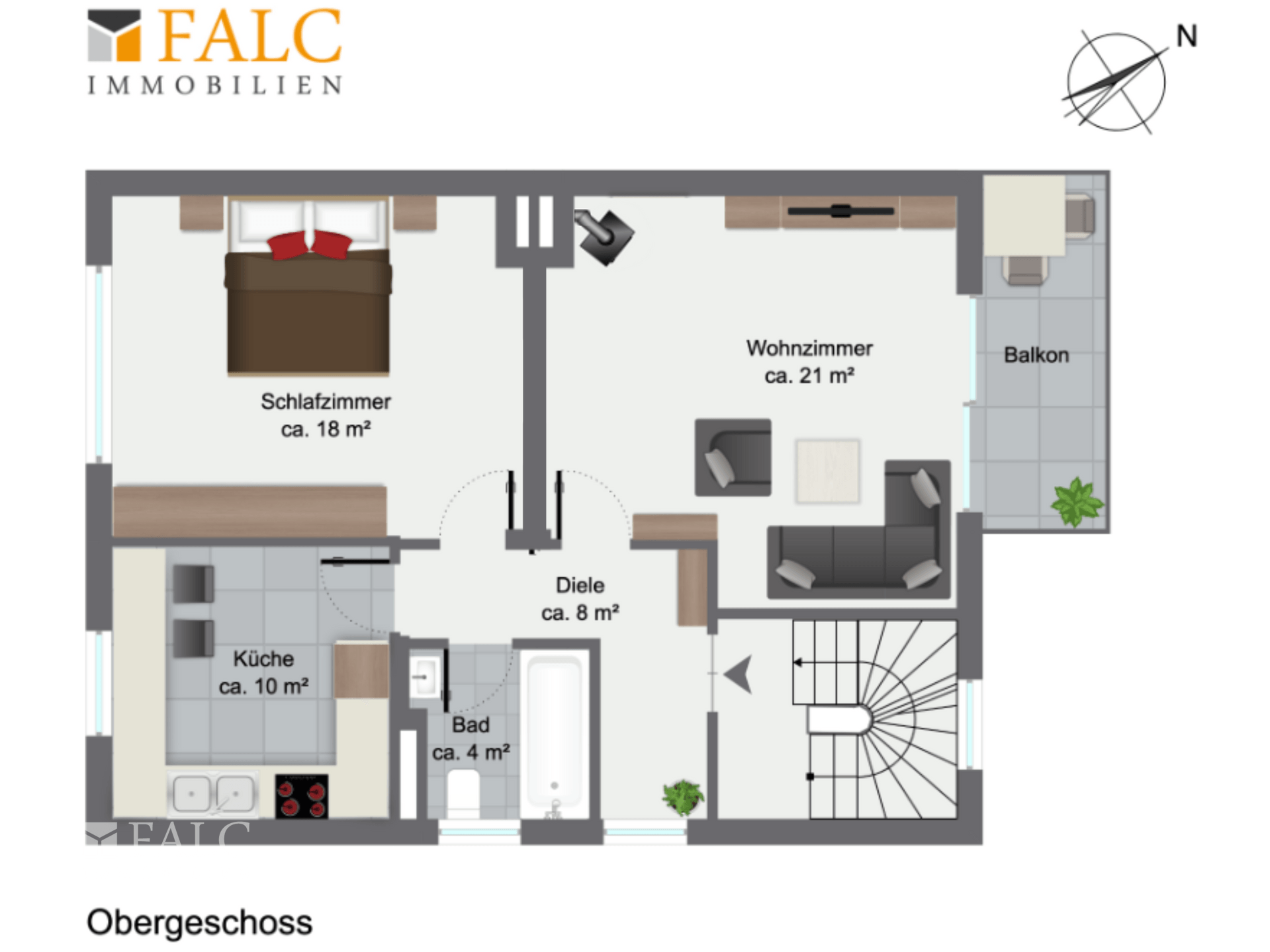 Die großzügige Maisonettewohnung erstreckt sich über zwei Etagen und überzeugt durch ein durchdachtes Raumkonzept mit drei Zimmern, Küche, Balkon und zwei voll ausgestatteten Badezimmern.
