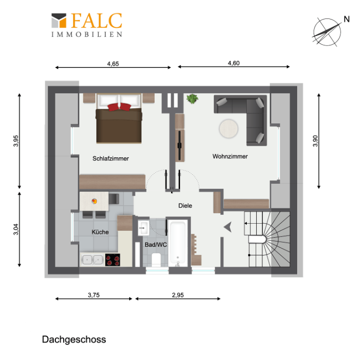 Dachgeschosswohnung (2 Zimmer, ca. 55 m² + Spitzboden)