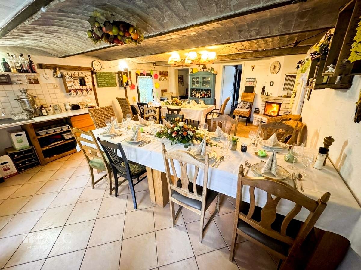 Ensemble: 2 vollständige Wohnhäuser + Einlieger-/Ferienwohnung, separates Gästezimmer, kleines Gartenhaus mit Profiküche, Werkstatt-/Holzschuppen, Teich, viele Terrassen/Grillplätze.
