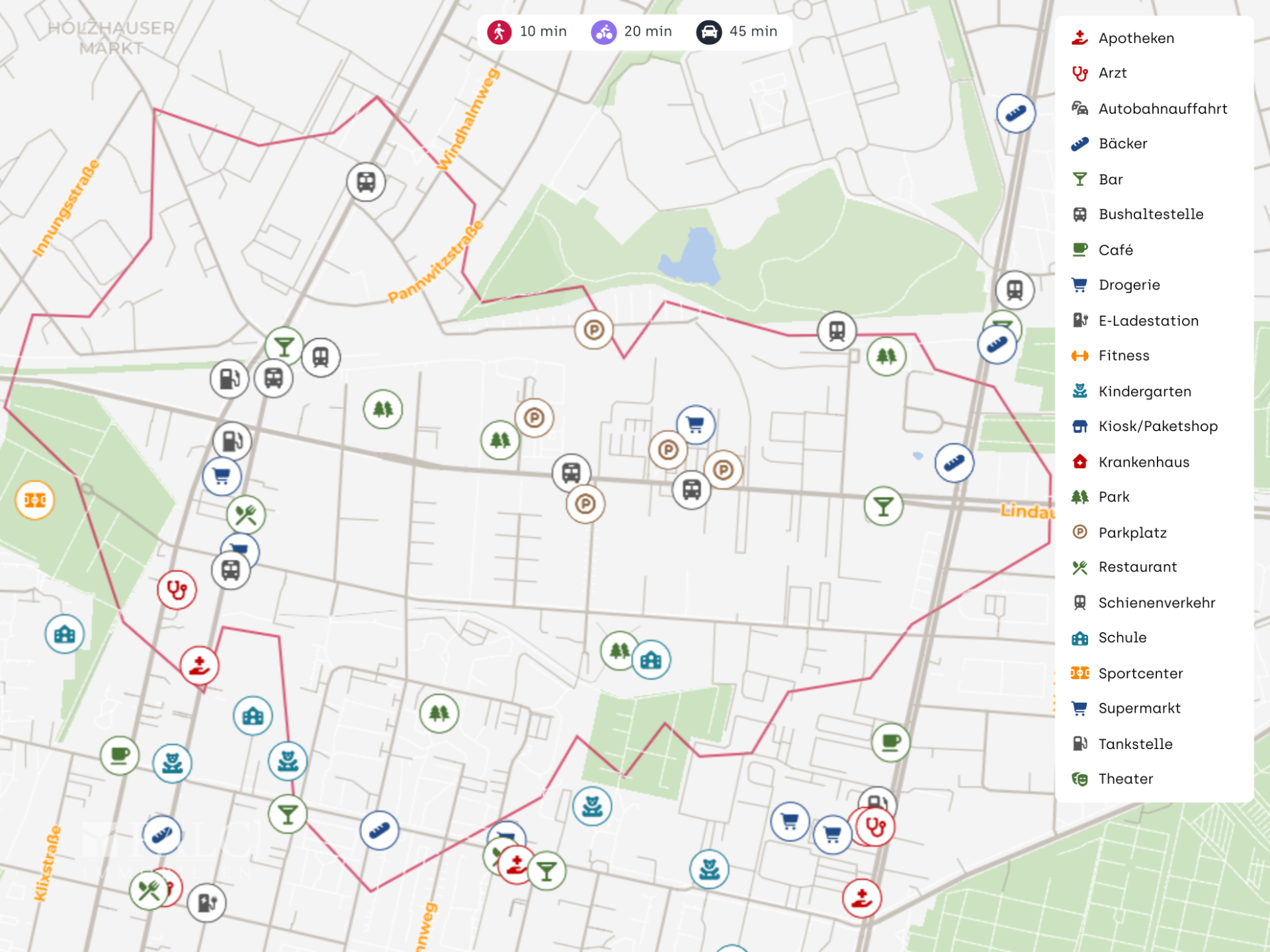 Die Nahversorgung ist komfortabel: Supermärkte (u. a. EDEKA), Bäckereien, Apotheken sowie verschiedene Dienstleister und Ärzte befinden sich in einem Radius von wenigen Gehminuten.
