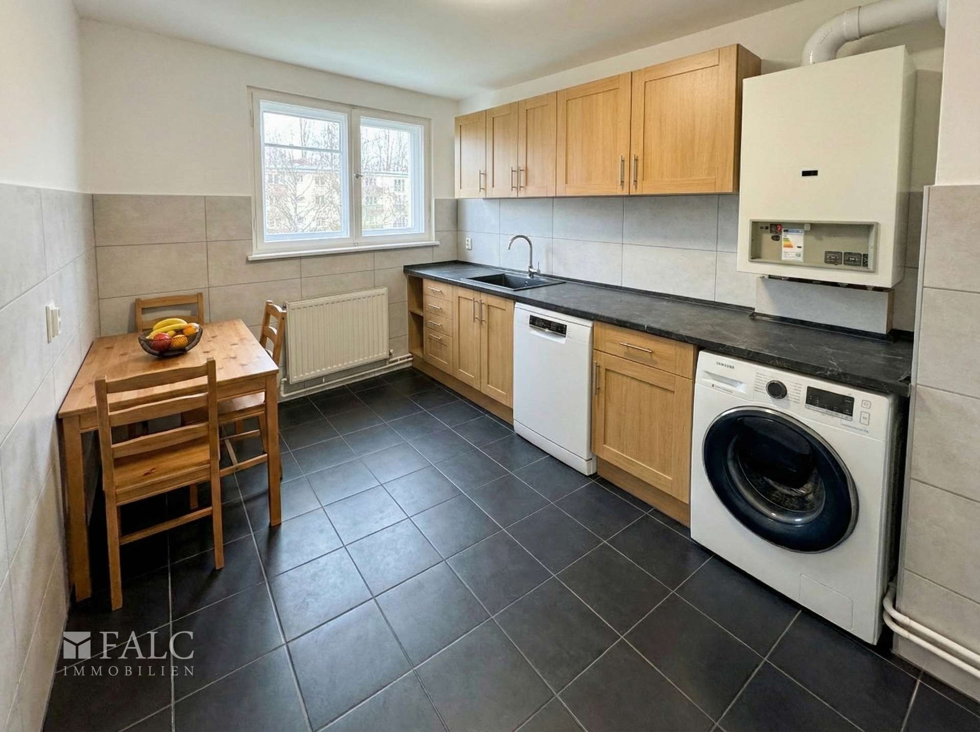 Die Küche verfügt über ein Fenster, gute Stellmöglichkeiten für Schränke und Geräte sowie Platz für eine kleine Essecke. Hier lässt sich ein funktionaler und gleichzeitig gemütlicher Kochbereich gestalten.