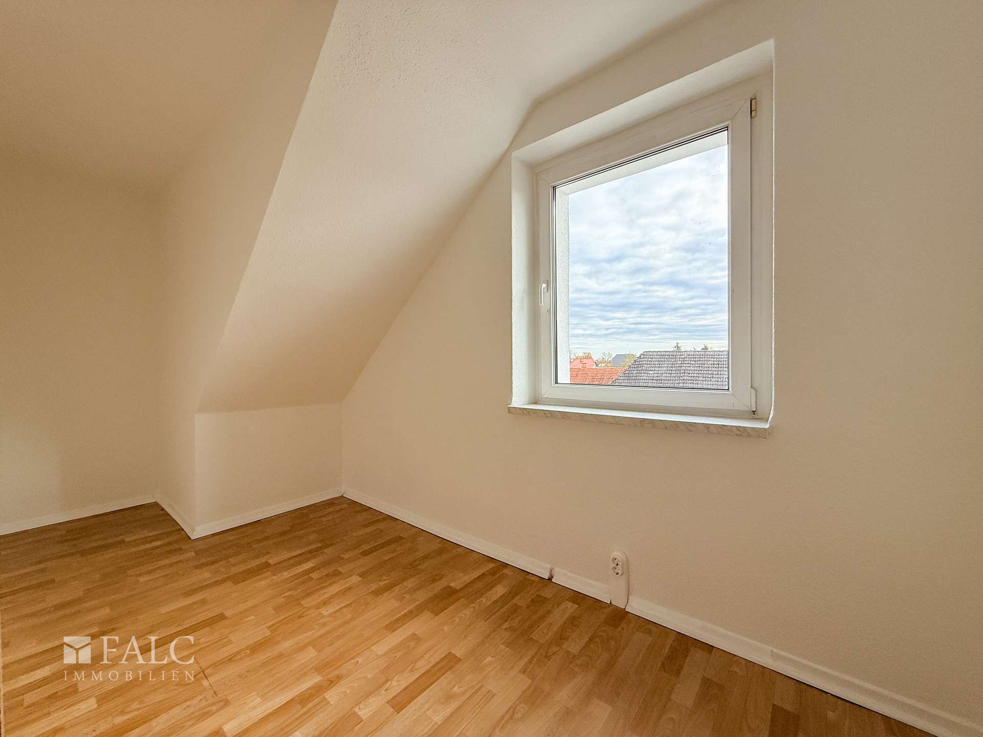 Das Kinderzimmer, das sich ebenfalls vom Flur aus betreten lässt, ist ideal für ein Einzelbett und einen Schreibtisch geeignet. Alternativ kann es auch als Büro oder Gästezimmer genutzt werden.