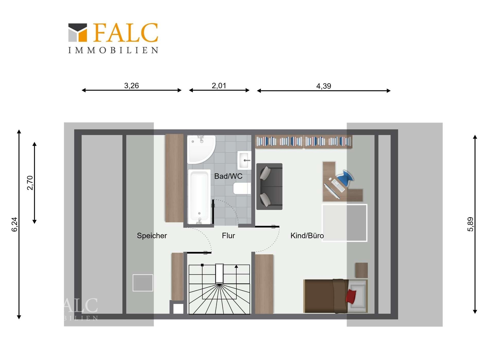 Im Dachgeschoss befindet sich ein weiteres Zimmer, das sich ideal als Schlafzimmer, Büro oder Kinderzimmer eignet. Ergänzt wird diese Etage durch ein Tageslichtbad sowie einen zusätzlichen, bereits ausgebauten Speicherraum, der hervorragend als Abstellfläche genutzt werden kann.
