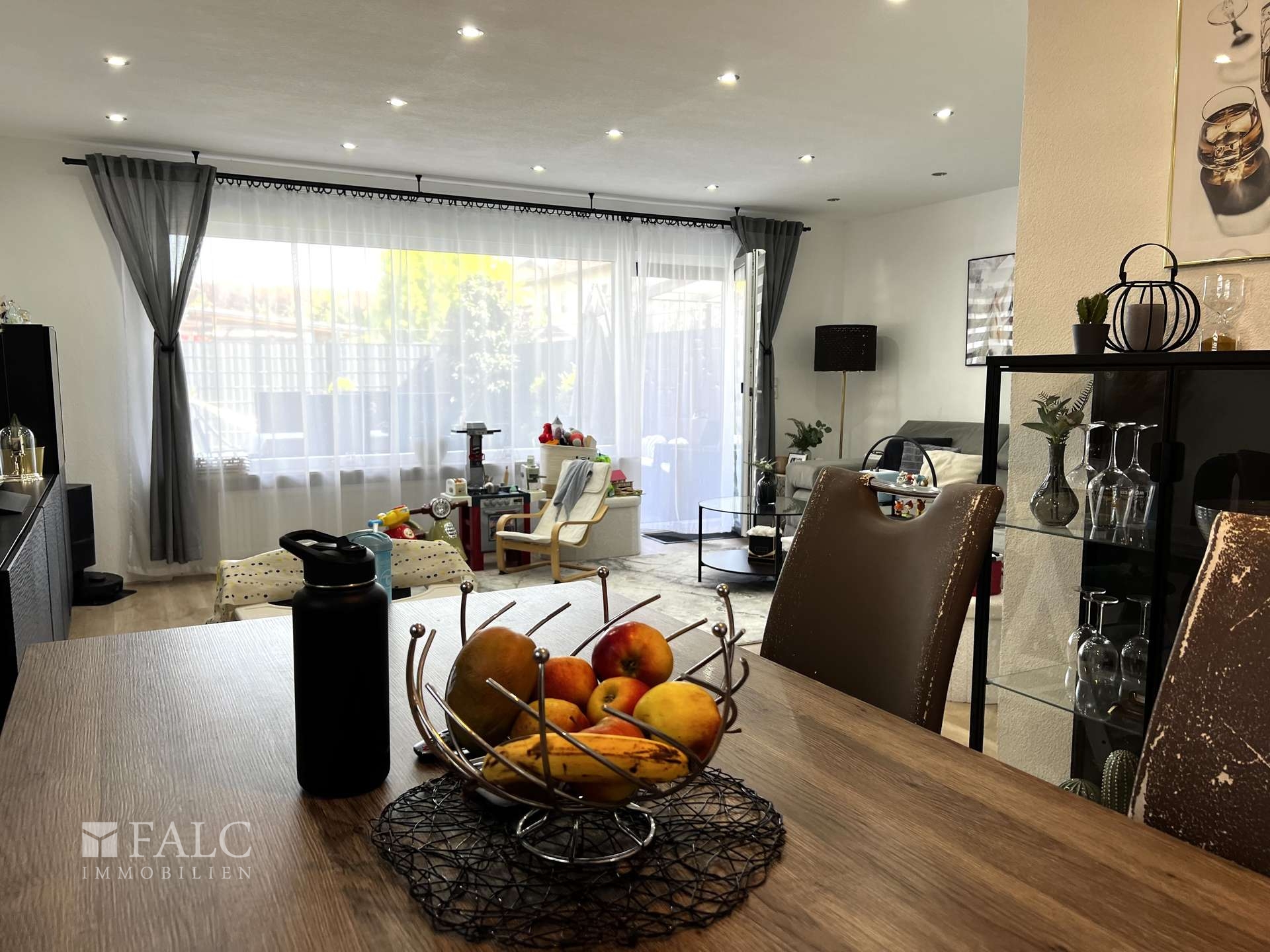 Zugang zur Terrasse und zum Garten vom Wohnzimmer aus