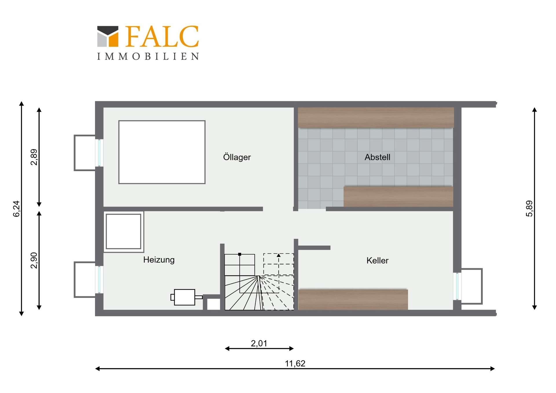 Heizraum, Öllager und zwei zusätzliche Kellerräume