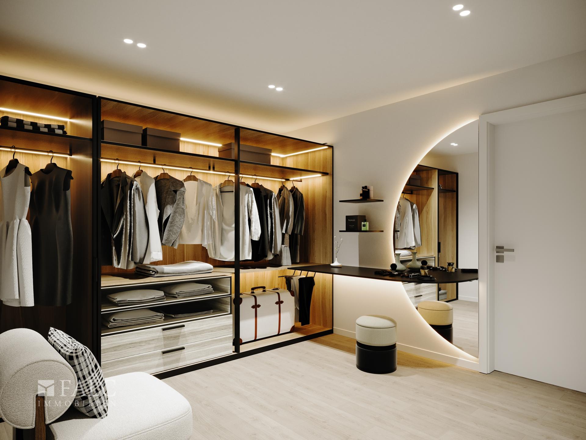 Ein besonderer Höhepunkt dieser Ebene wird der klar abgetrennte Privatbereich sein. Dieser wird ein großzügiges Schlafzimmer, eine separate Ankleide und ein luxuriös ausgestattetes Badezimmer zu einer in sich geschlossenen privaten Wohnwelt vereinen. Dort wird ein Ort entstehen, der Intimität und Ruhe versprechen wird.