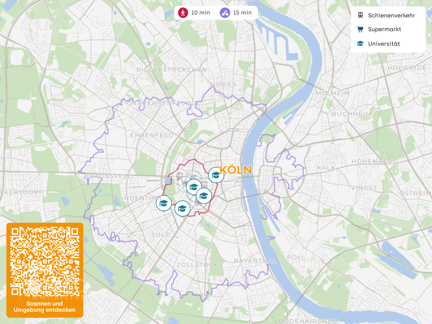 Eine zentrale, lebendige und zugleich ruhige Wohnlage – ideal für alle, die mitten in Köln leben und dennoch nicht auf Lebensqualität verzichten möchten.