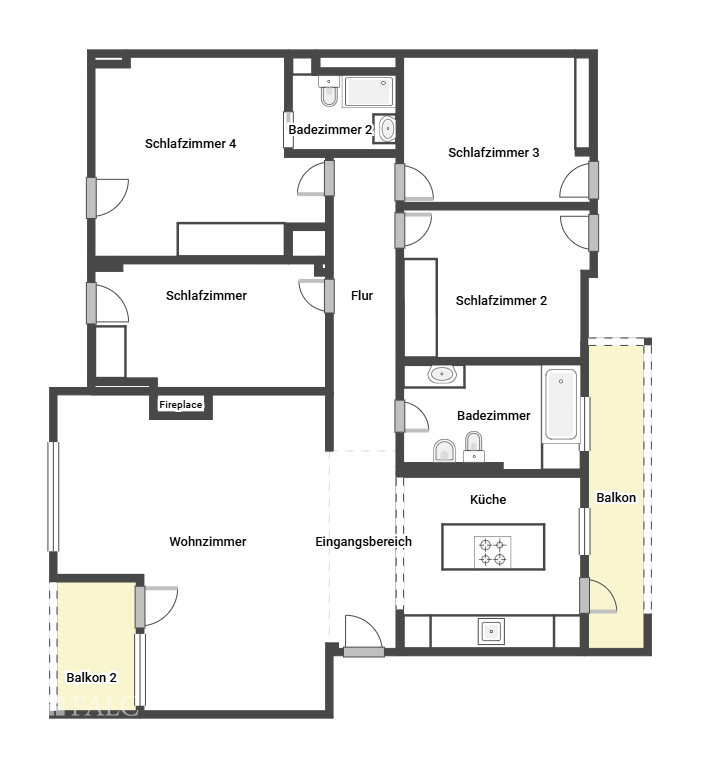 Ein besonderes Highlight im Wohnzimmer ist der stilvolle Kamin, der an kühlen Abenden für eine gemütliche Stimmung sorgt. Vom Wohnzimmer aus gelangen Sie direkt auf den Balkon, der einen weiten Blick über die Umgebung bietet. Hier können Sie entspannte Stunden im Freien genießen.