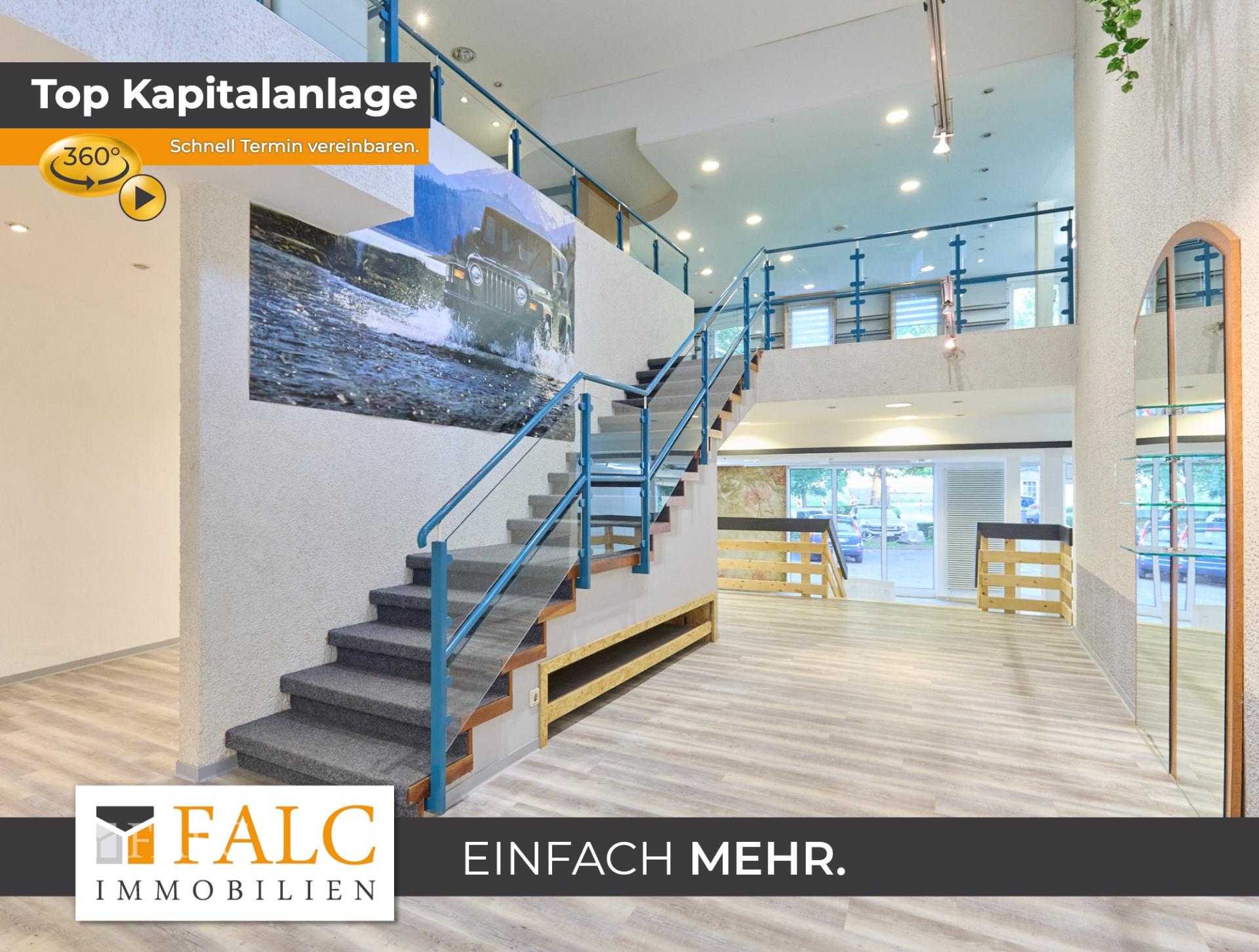 Die rund 270 m² große Gewerbefläche verteilt sich auf zwei Etagen und ist über zwei separate Eingänge zugänglich – einer davon direkt vom Marktplatz, der andere von der Schleidanusstraße mit direkter Anbindung an den öffentlichen Parkplatz.